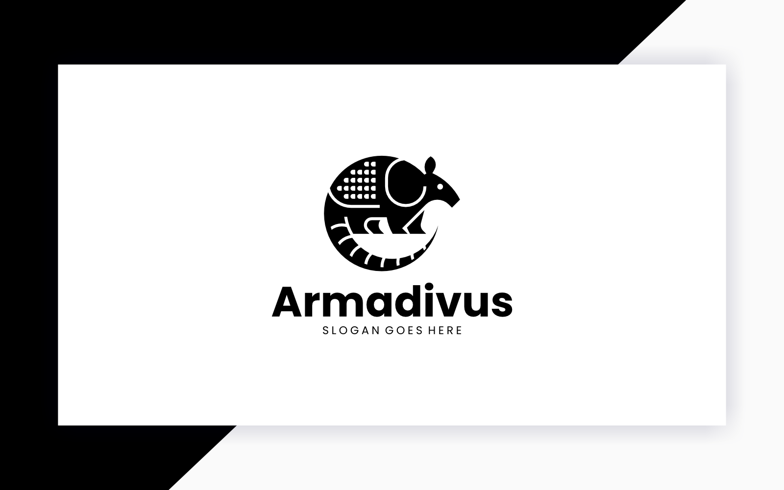 Armadivus – Minimal Armadillo Silhouette Logo in Abstract Circle Design