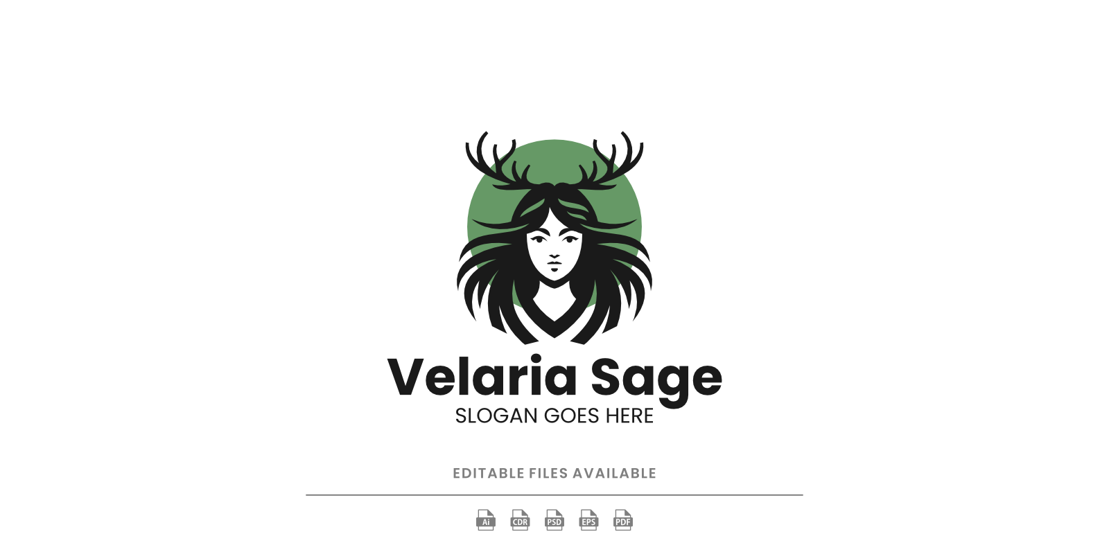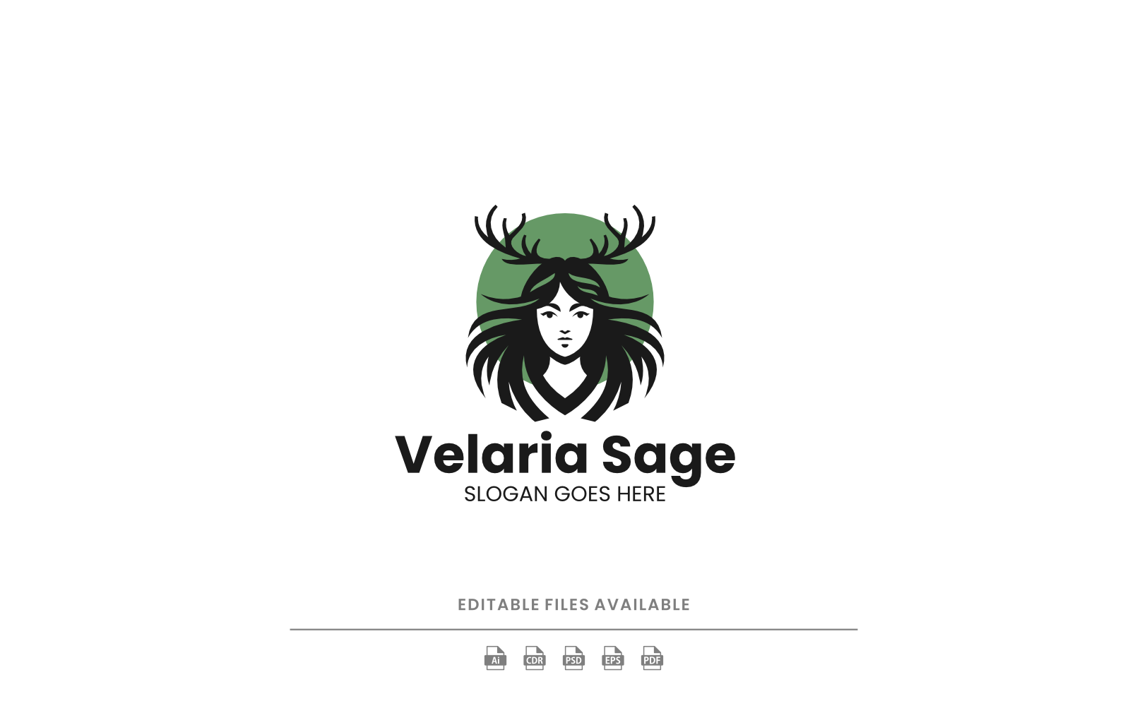 Velaria Sage is a modern, abstract logo featuring the elegant head of a youthful druidic goddess. Flowing hair tied gently at the top and subtle deer antlers weave through the silhouette, blending grace with the raw beauty of the wild. Crafted with bold, freehand lines, this design embodies both softness and strength, making it ideal for brands or projects connected to nature, magic, spirituality, or storytelling. Velaria Sage symbolizes the harmony between ancient wisdom and wilderness — a timeless mark of mystical power and insight.