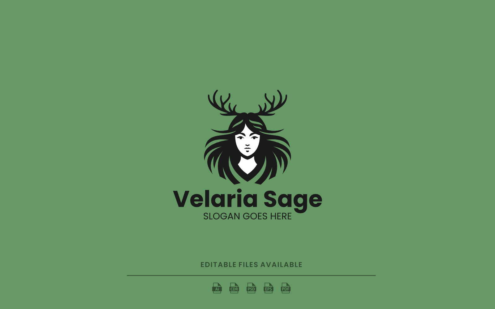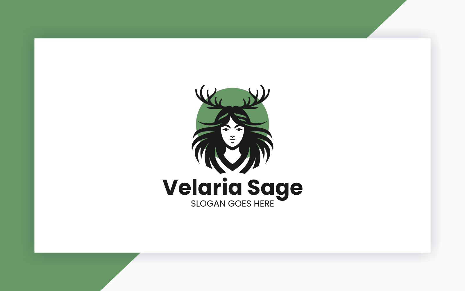 Velaria Sage - Modern Mystic Guardian Logo with Abstract Deer Antler Silhouette