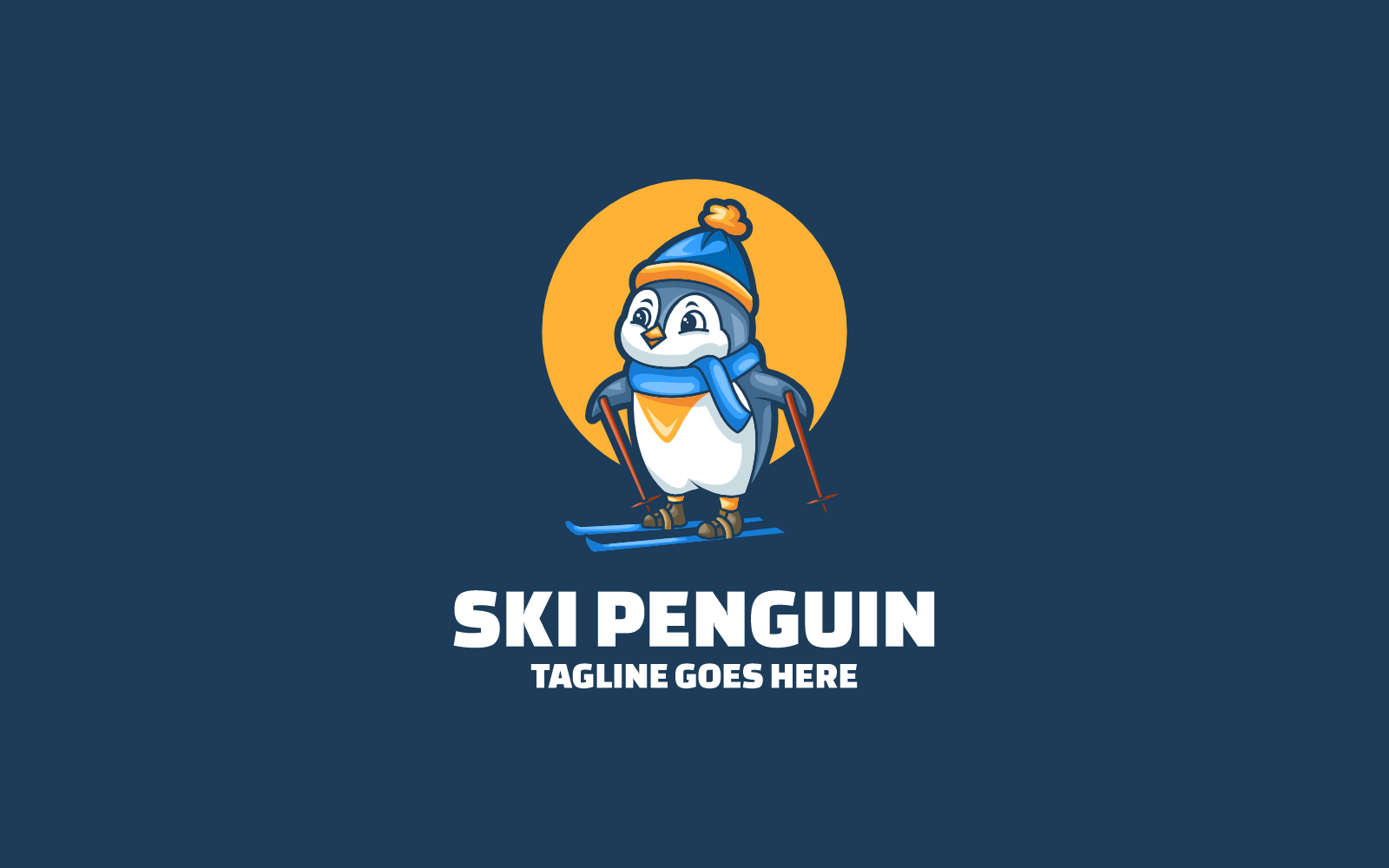 Ski Penguin Mascot Cartoon Logo Logo Template