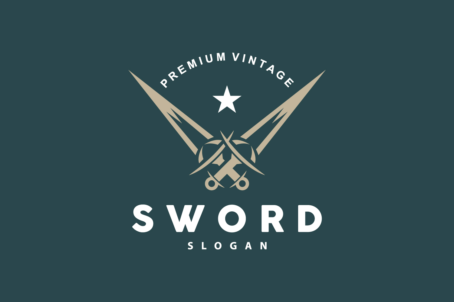 Sword Logo, Fighter War Weapon Vector, Premium Retro Vintage Typography Design