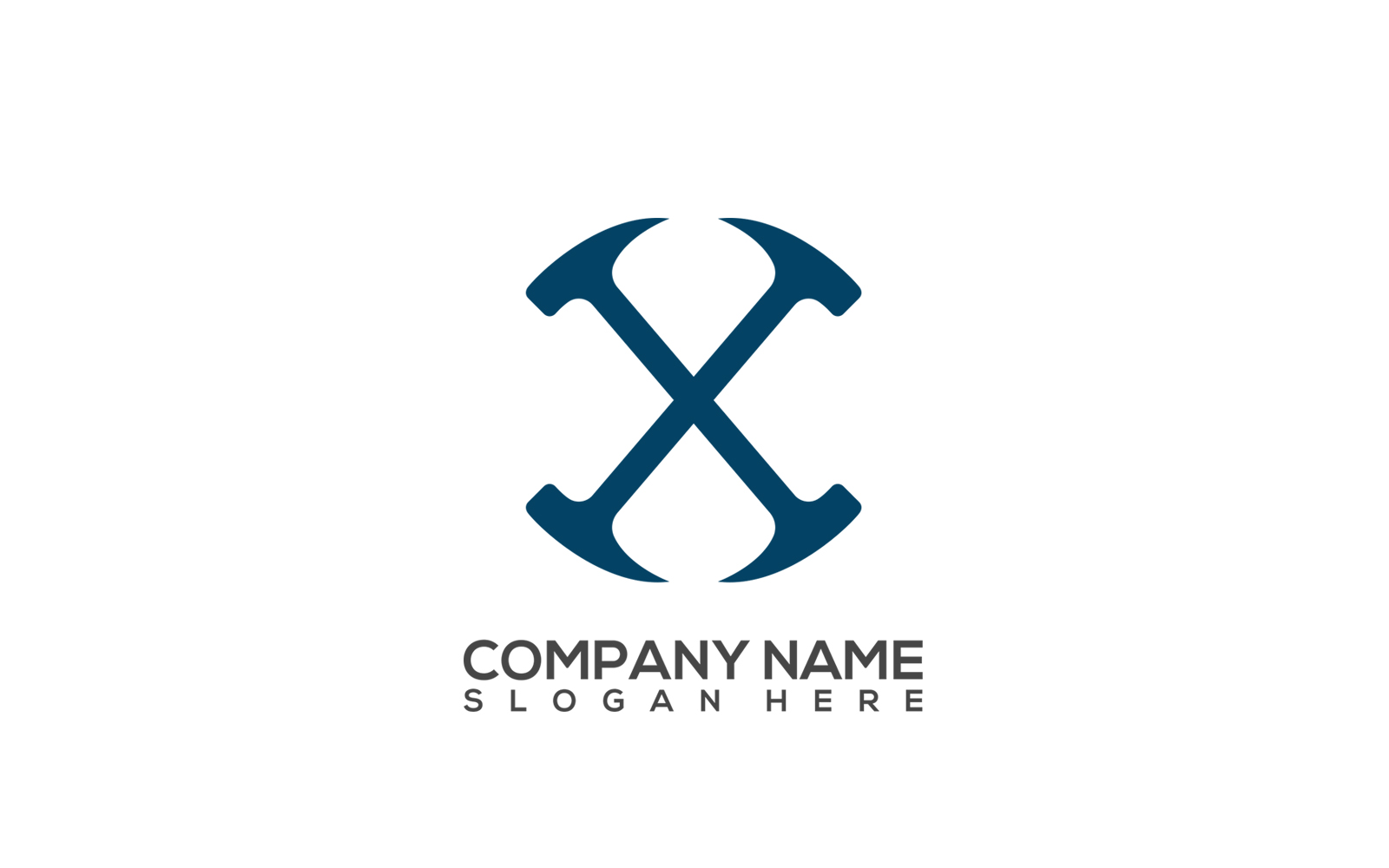 X | Letter X Hammer Logo Design | Premium Infinity Letter X Hammer Vector Logo Logo Template