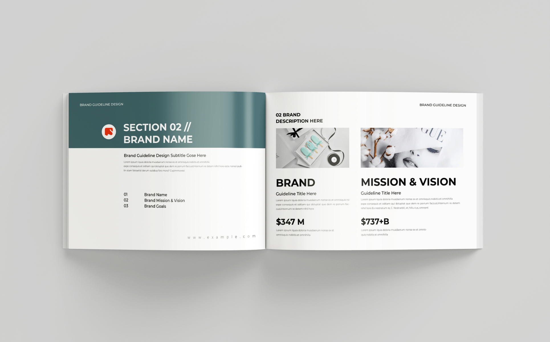 This Brand Guideline template is a premium designed book layout available to use in Adobe Indesign. The contains modern, and elegant layouts with well-crafted details like automatic page numbering, automatic table of contents, text pages and pages with captions. It includes paragraph/character