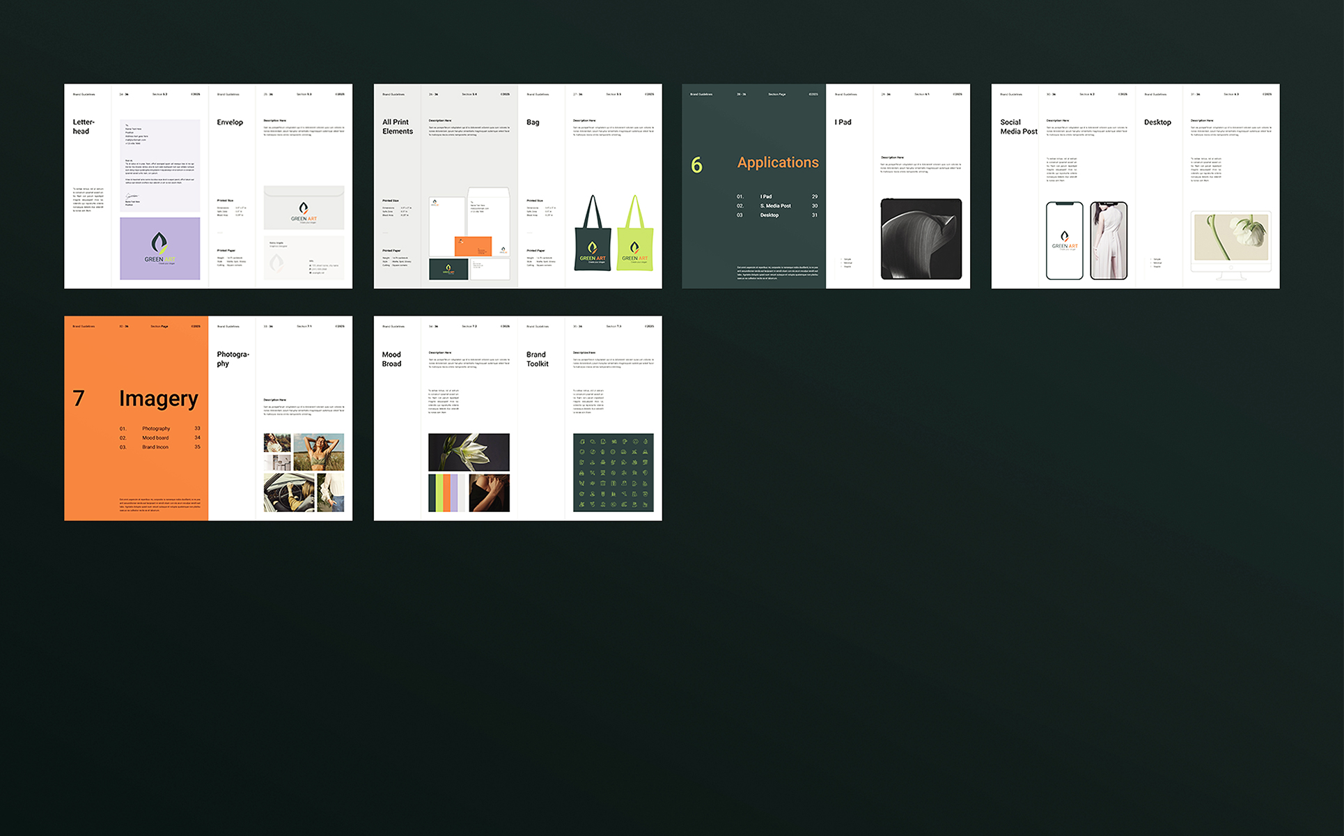 We have designed this template to be as flexible as possible for a variety of clients. This template features 7 sections and is packed full of features. Sections include: The Brand, Logo, Color Palette, Typography, Imagery, Application & Contact