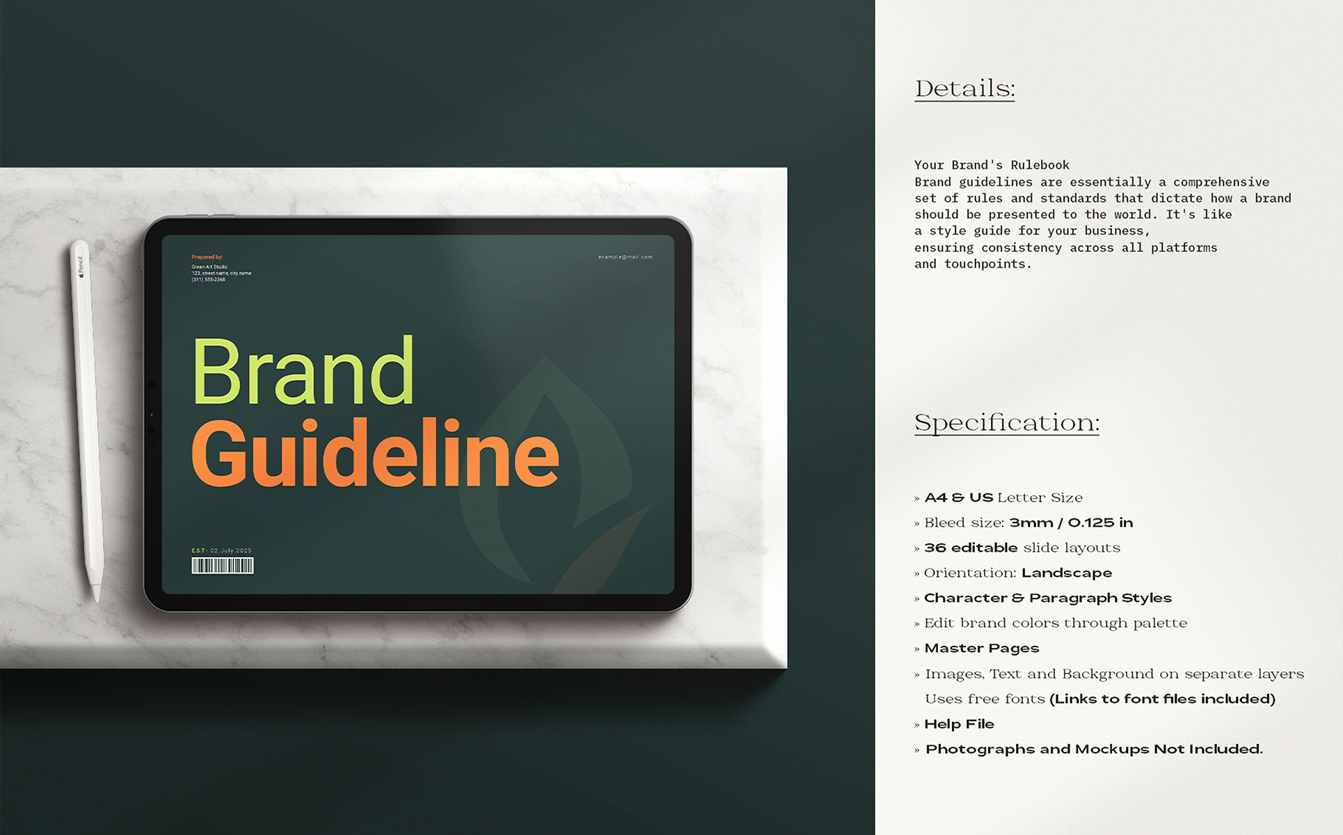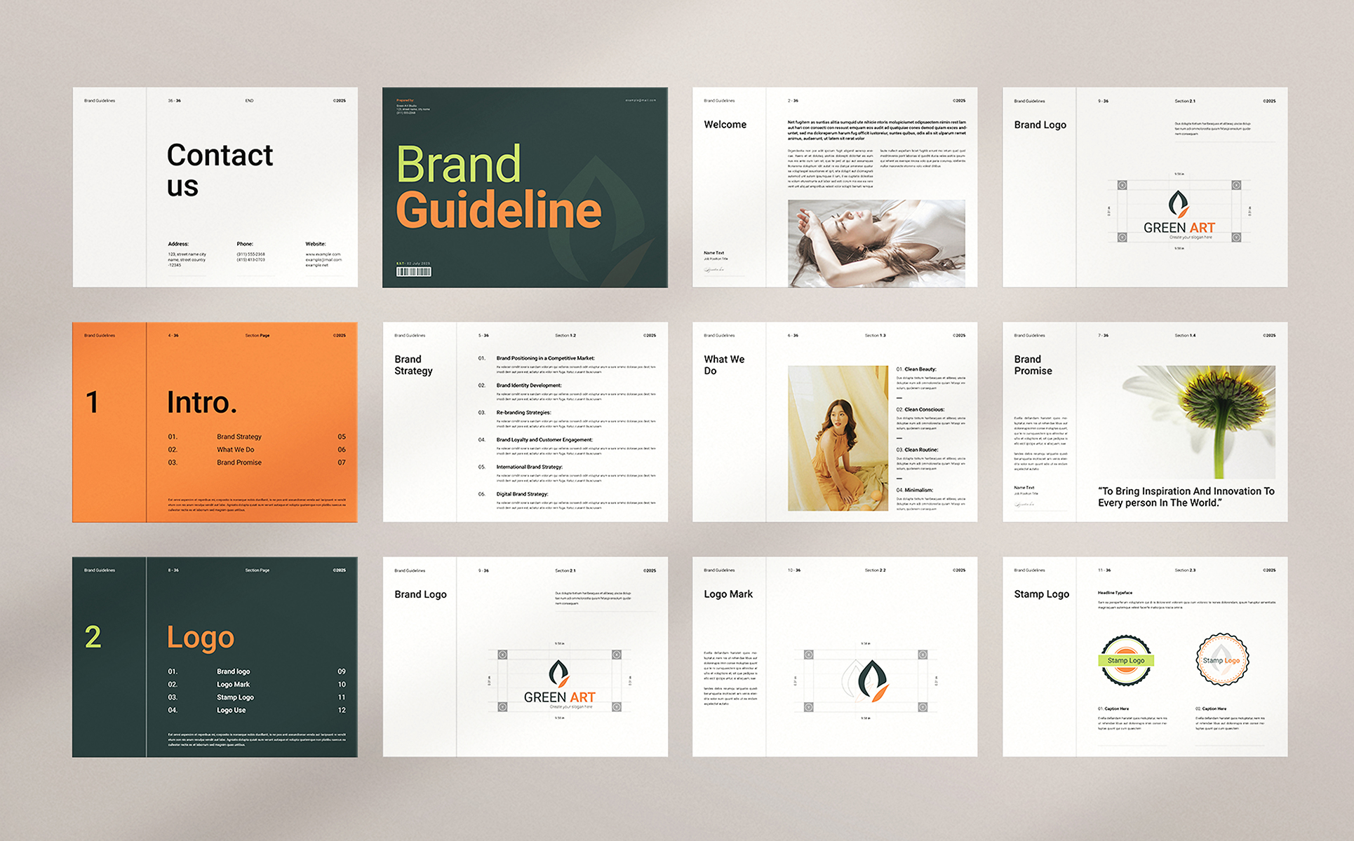 36 pages Brand Identity Guidelines Template is fully editable template created for Adobe InDesign.