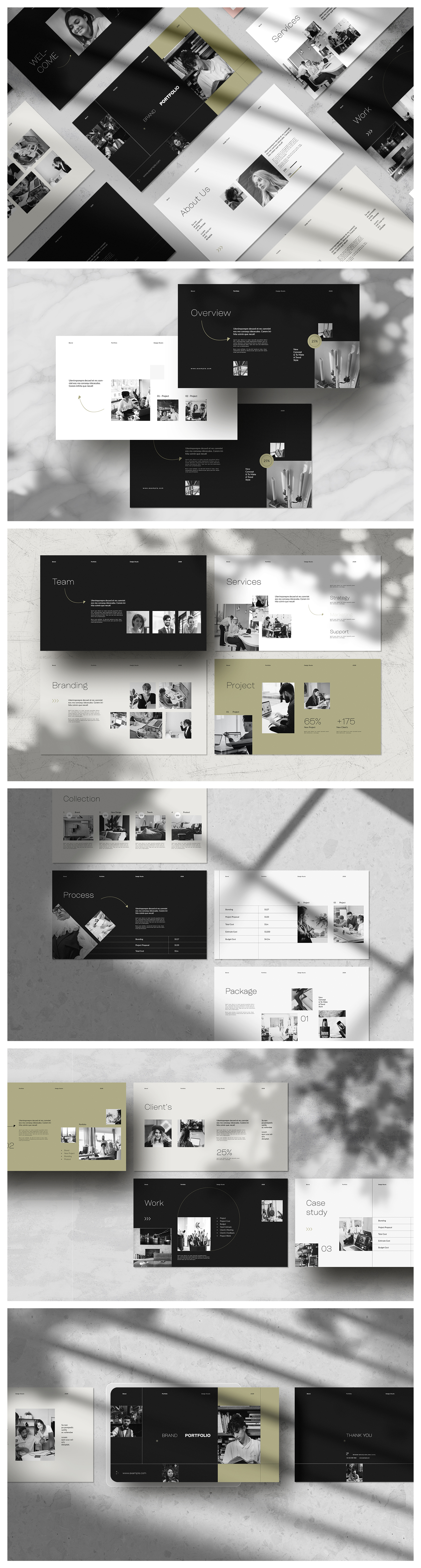 Creative Portfolio Template. This layout is suitable for any project purpose. Each page features unique layouts with contemporary tipography and then many layouts for the images with titles and short descriptions.