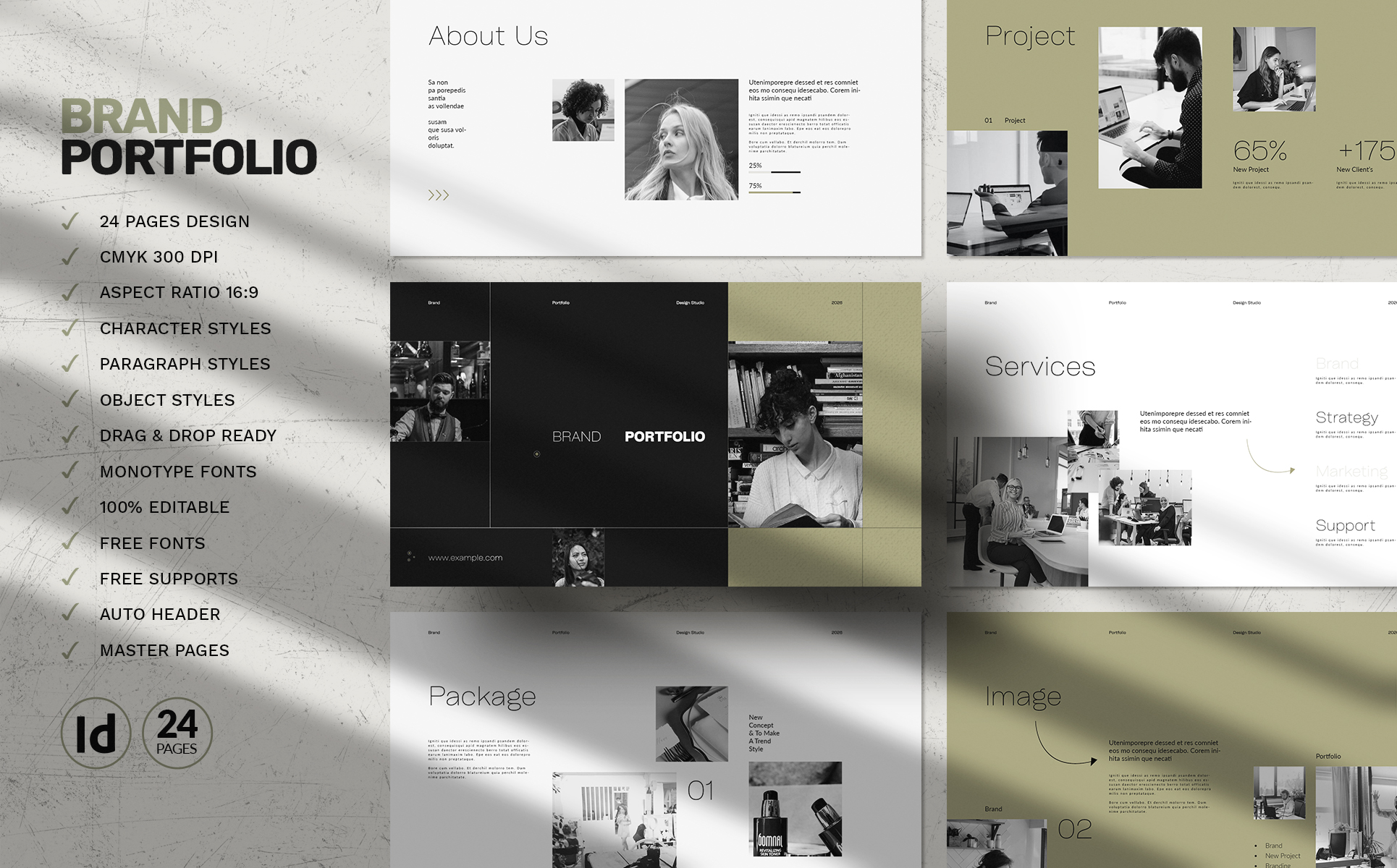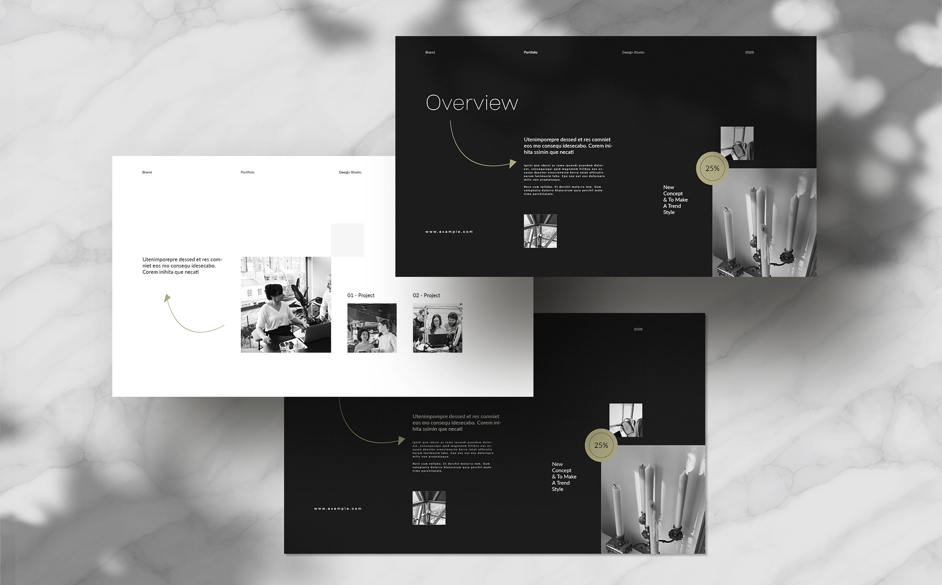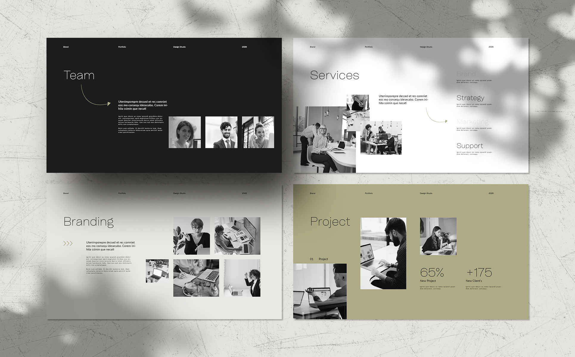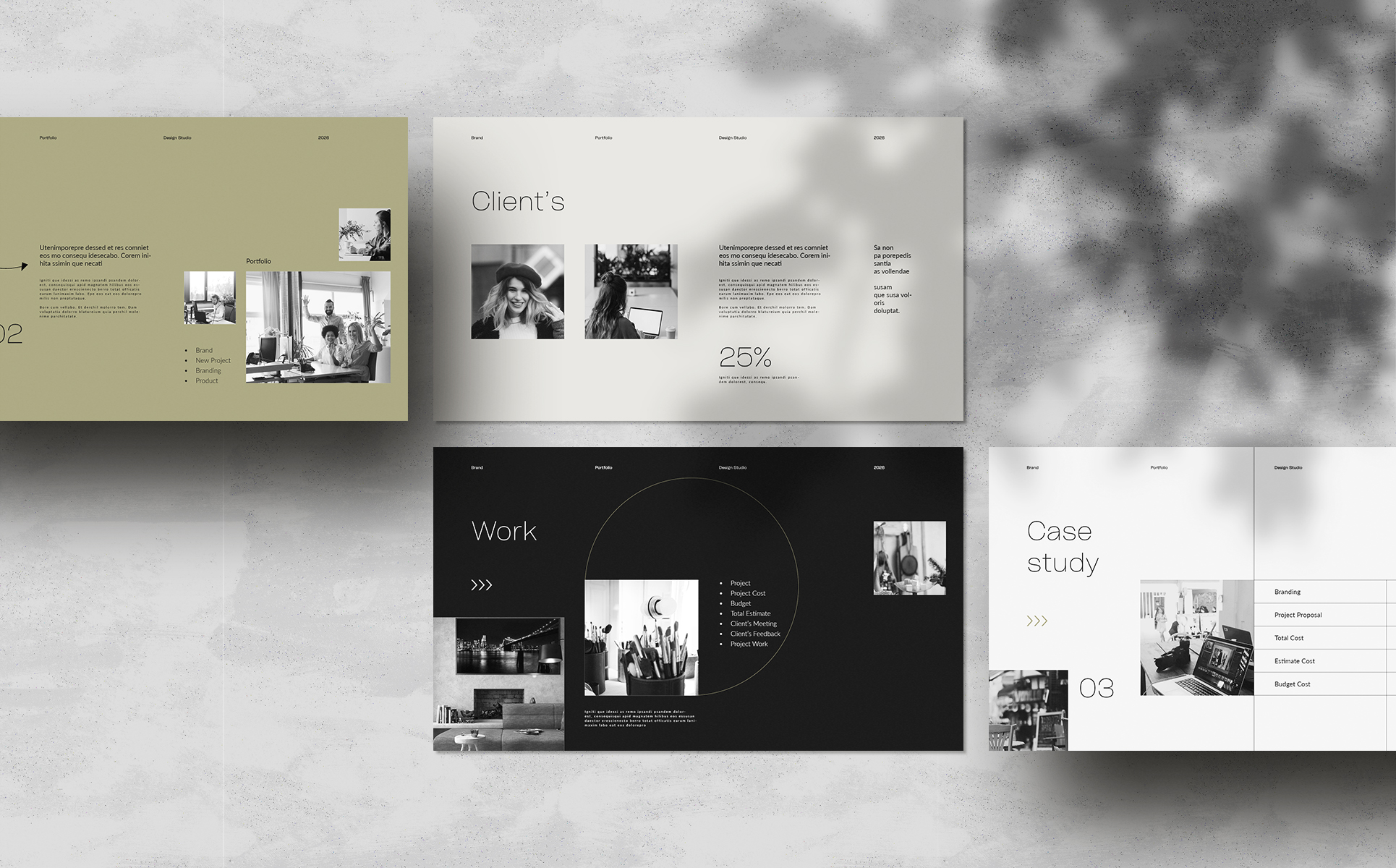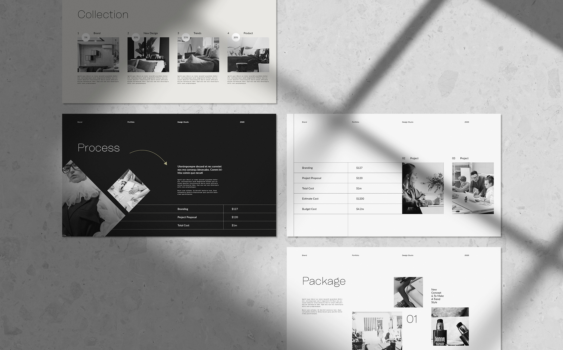 Creative Portfolio Template. This layout is suitable for any project purpose. Each page features unique layouts with contemporary tipography and then many layouts for the images with titles and short descriptions.