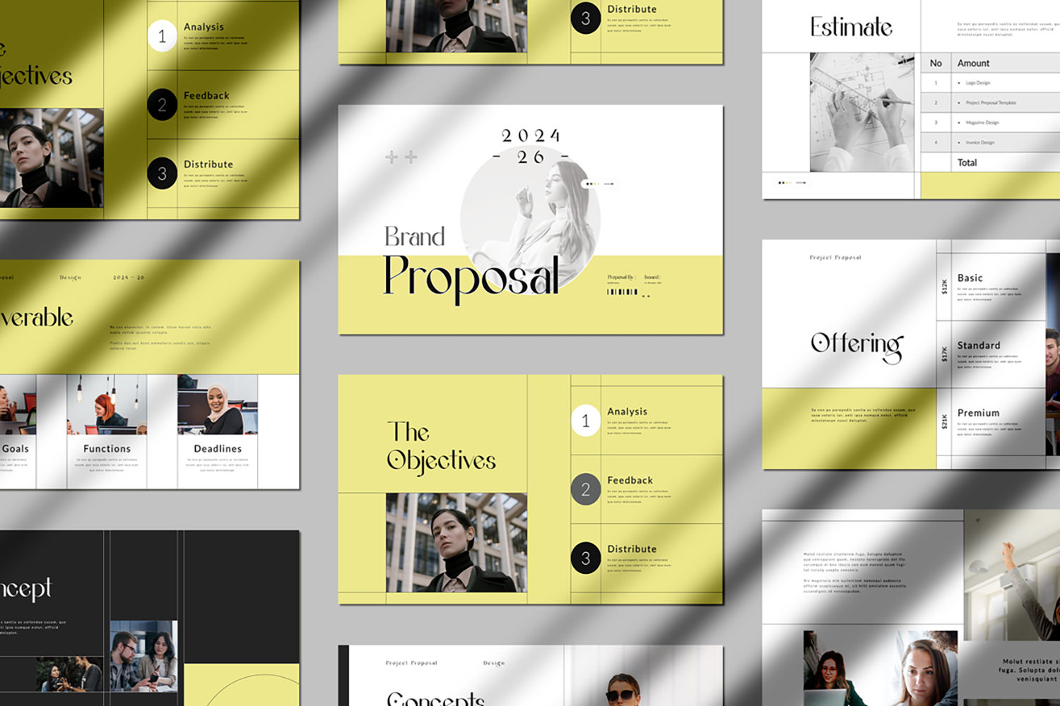Elevate your brand strategy with our Brand Proposal design template. This versatile tool streamlines the creation of persuasive brand proposals. With customizable sections for showcasing your brand vision, strategy, and market analysis, it ensures a professional presentation.