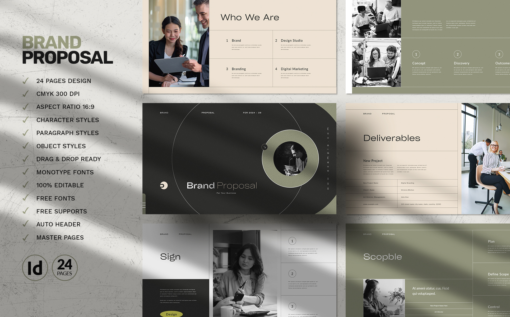 Elevate your brand strategy with our Brand Proposal design template. This versatile tool streamlines the creation of persuasive brand proposals. With customizable sections for showcasing your brand vision, strategy, and market analysis, it ensures a professional presentation.
