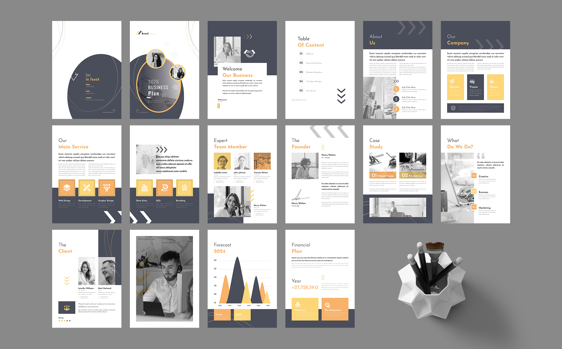 Business Plan Design Template, a fusion of professionalism and creativity. This layout combines sleek design, clear visuals, and strategic organization for a comprehensive presentation. Tailored for entrepreneurs, it offers a visually appealing and informative platform to showcase business strategies.