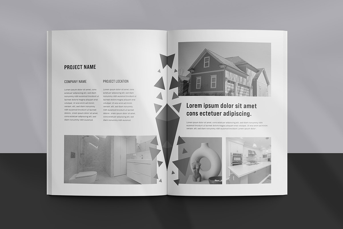 Business Portfolio Catalogue and Portfolio template for creative businesses, created in Adobe Illustration in International A4 Design. All fonts, shapes and other elements are very easy to customize with Adobe Illustrator..