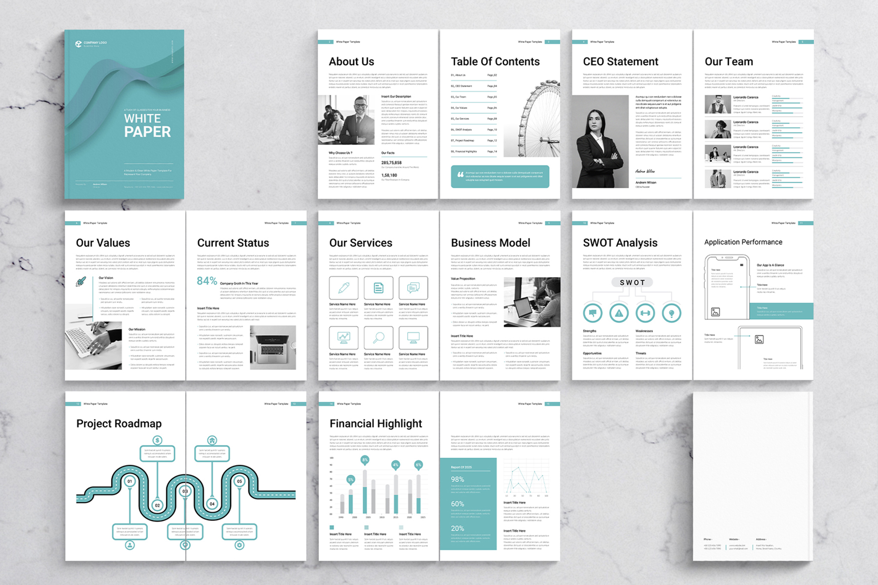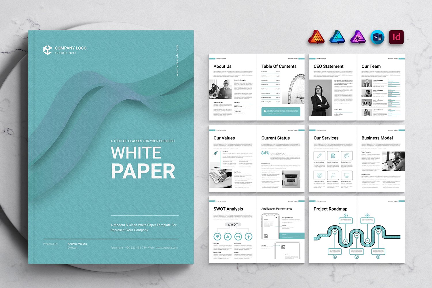 Business White Paper Template for MS Word, InDesign and Affinity Suites Magazine Template