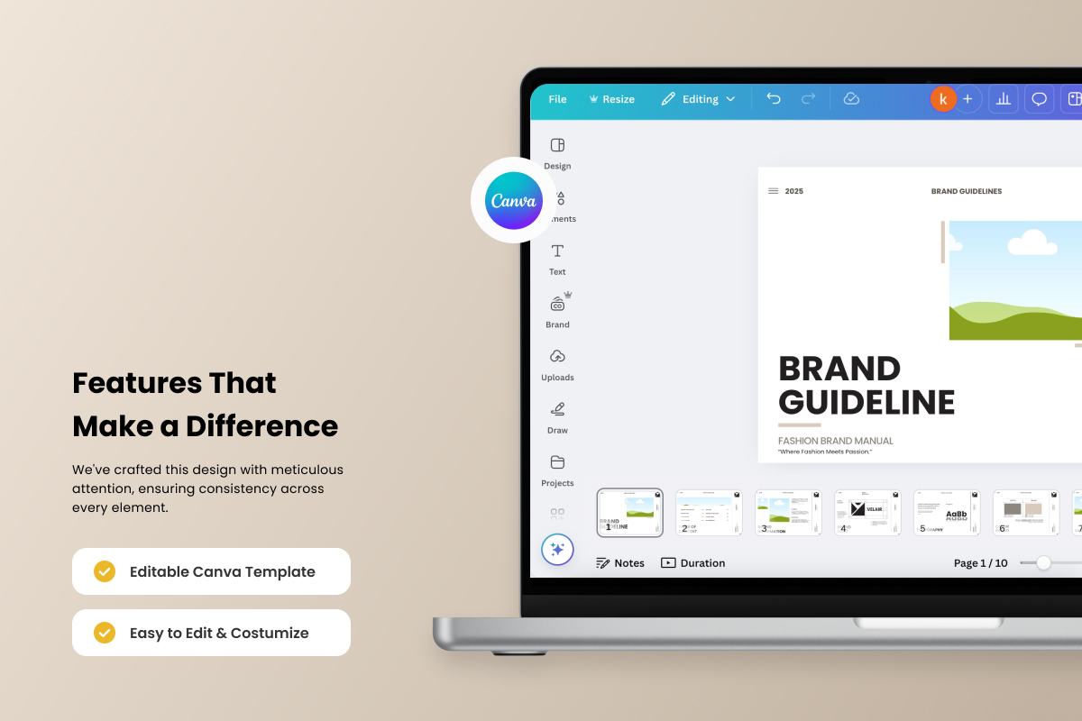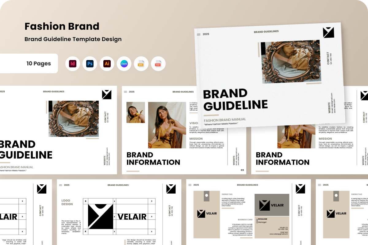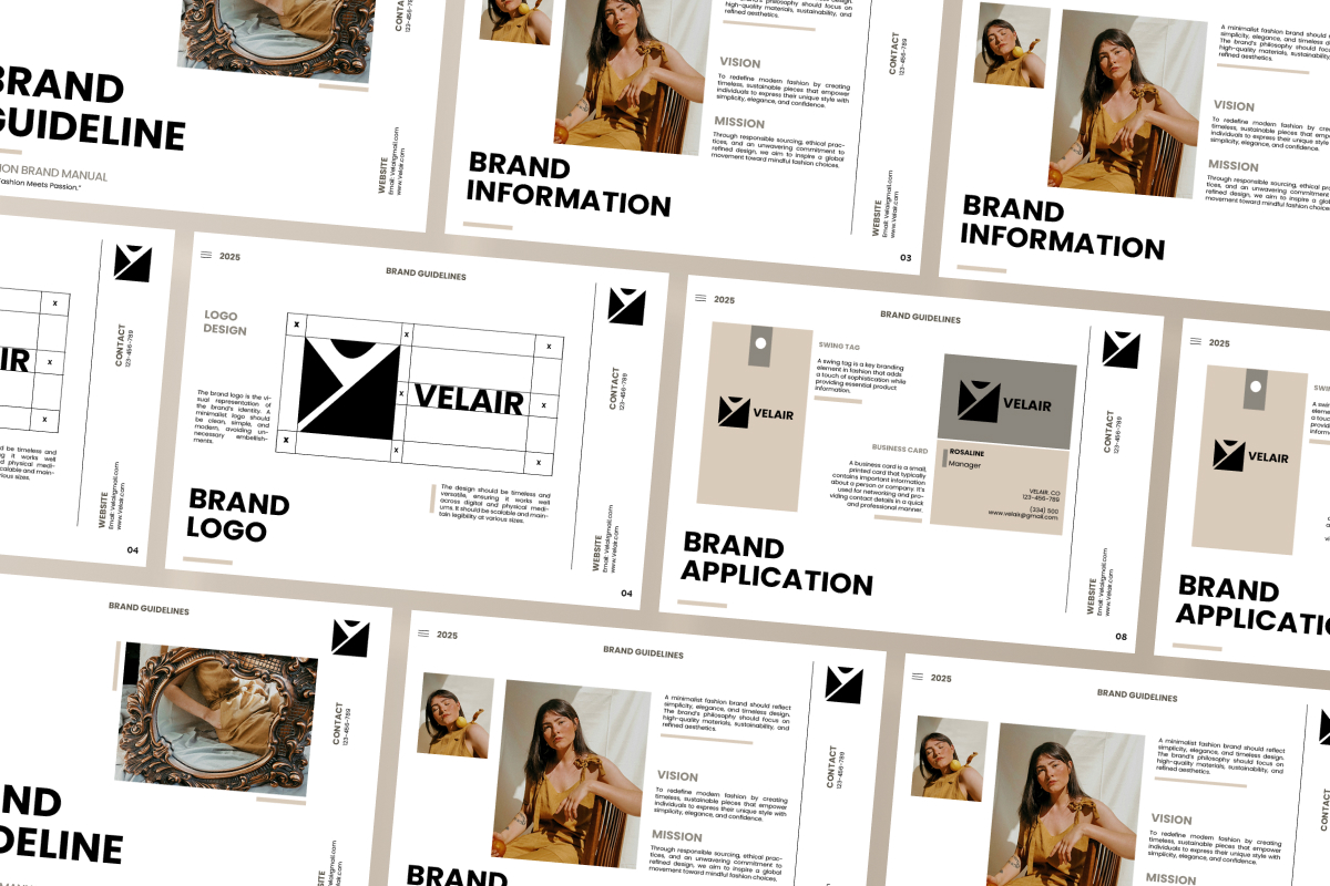 Define your brand’s essence with a sleek and professional brand guide. Designed with white space for a refined look, structured sections, and a sophisticated font combination, this guide helps fashion brands, creative agencies, and luxury businesses establish a strong identity. Perfect for maintaining brand consistency across print and digital platforms.