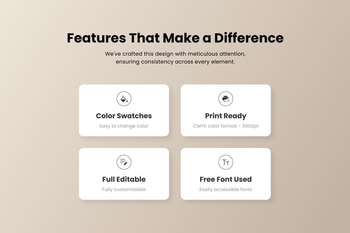- **Standard A4 Size:** Landscape orientation with bleed included. Suitable for global business needs, easy to print and send.