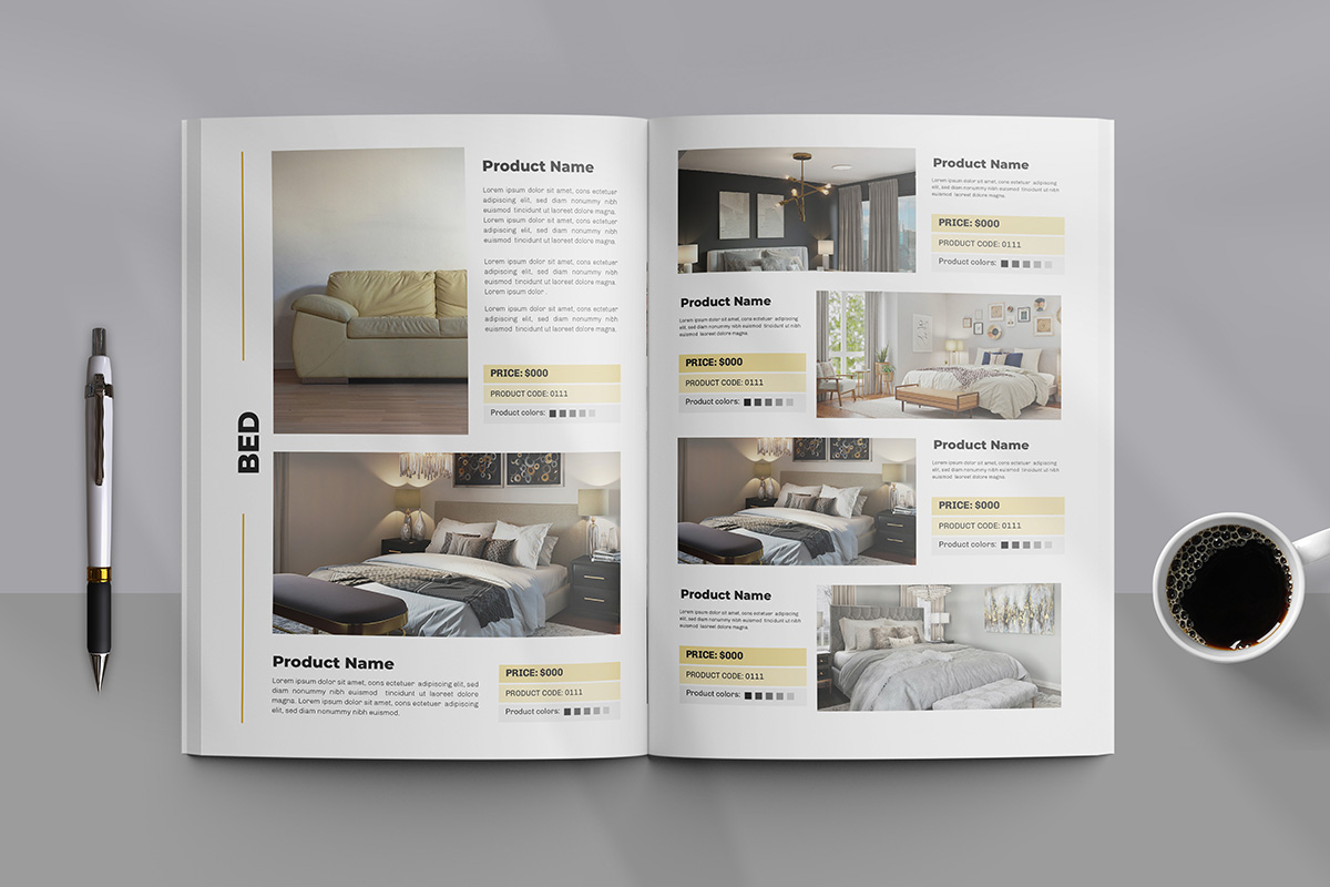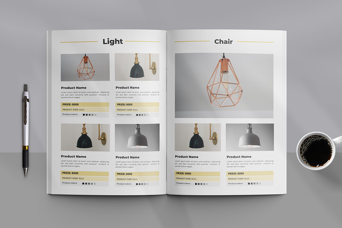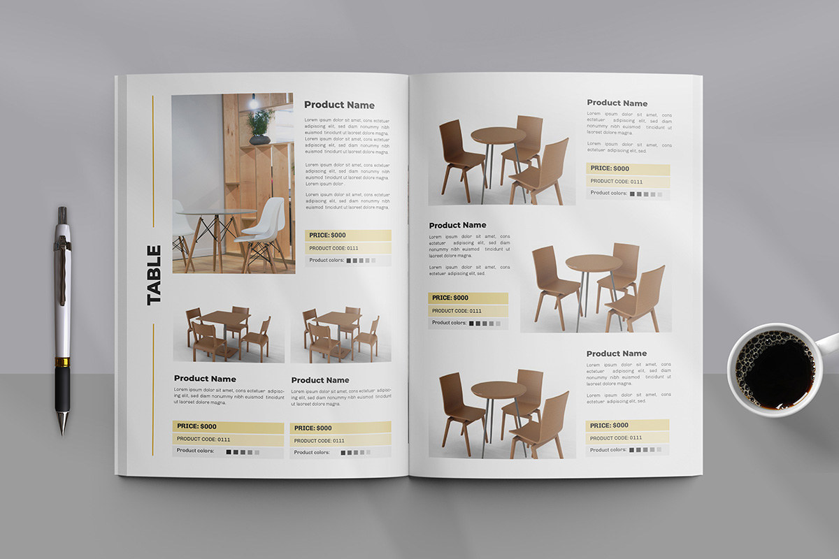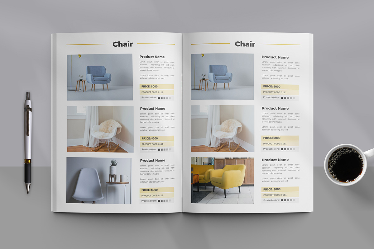 Furniture Catalog is a clean, modern and professional Template Design that can be used for businesses or organizations to showcase their products. All fonts, shapes and other elements are very easy to customize with Adobe Illustrator..