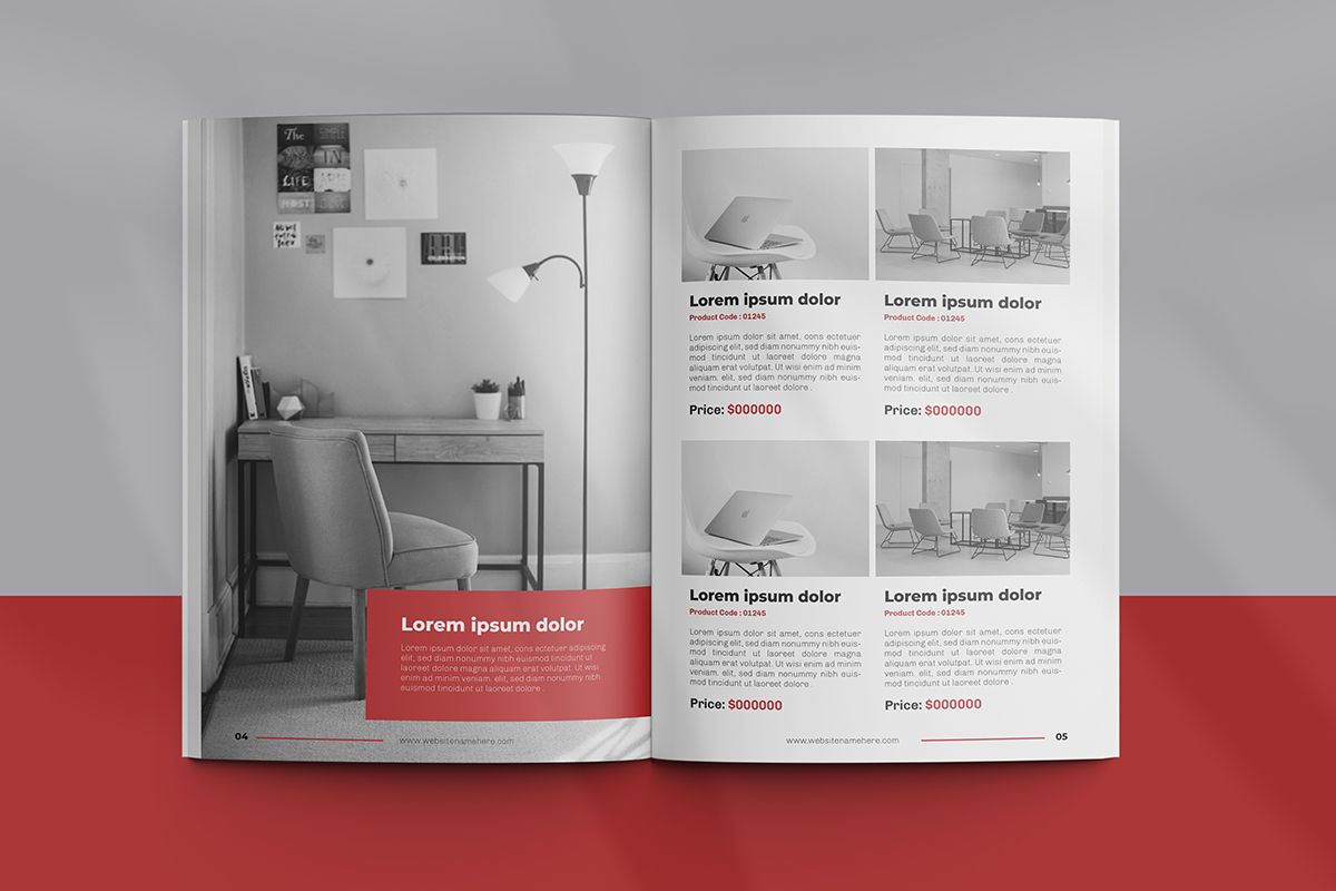 Furniture Catalogue Template Design can be used for businesses or organizations to showcase their products. All fonts, shapes and other elements are very easy to customize with Adobe Illustrator..