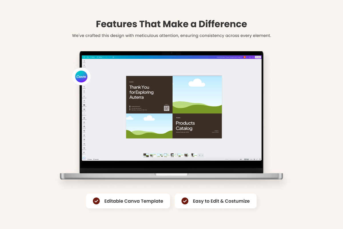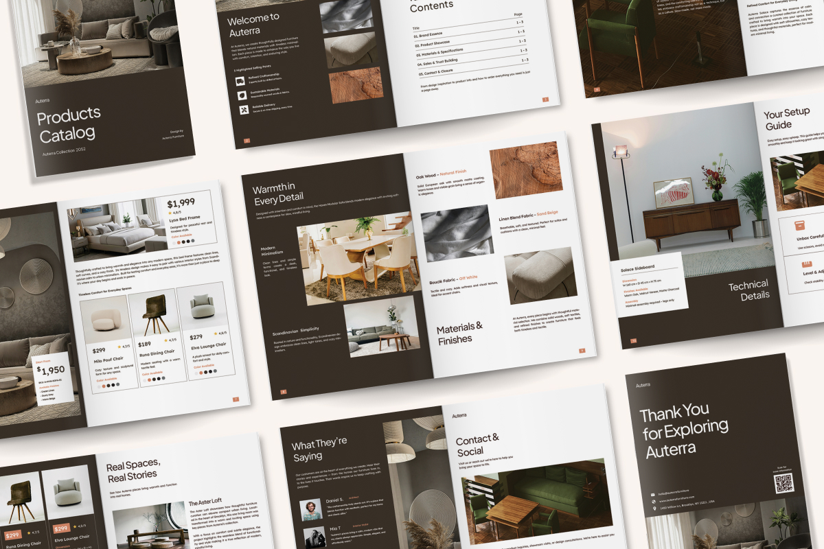 Built to inspire your audience, this template allows you to tell your brand story visually while making your product information clear and easy to digest. A versatile solution for seasonal collections, product launches, or marketing campaigns that require a cohesive presentation.