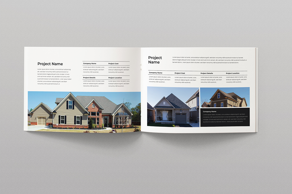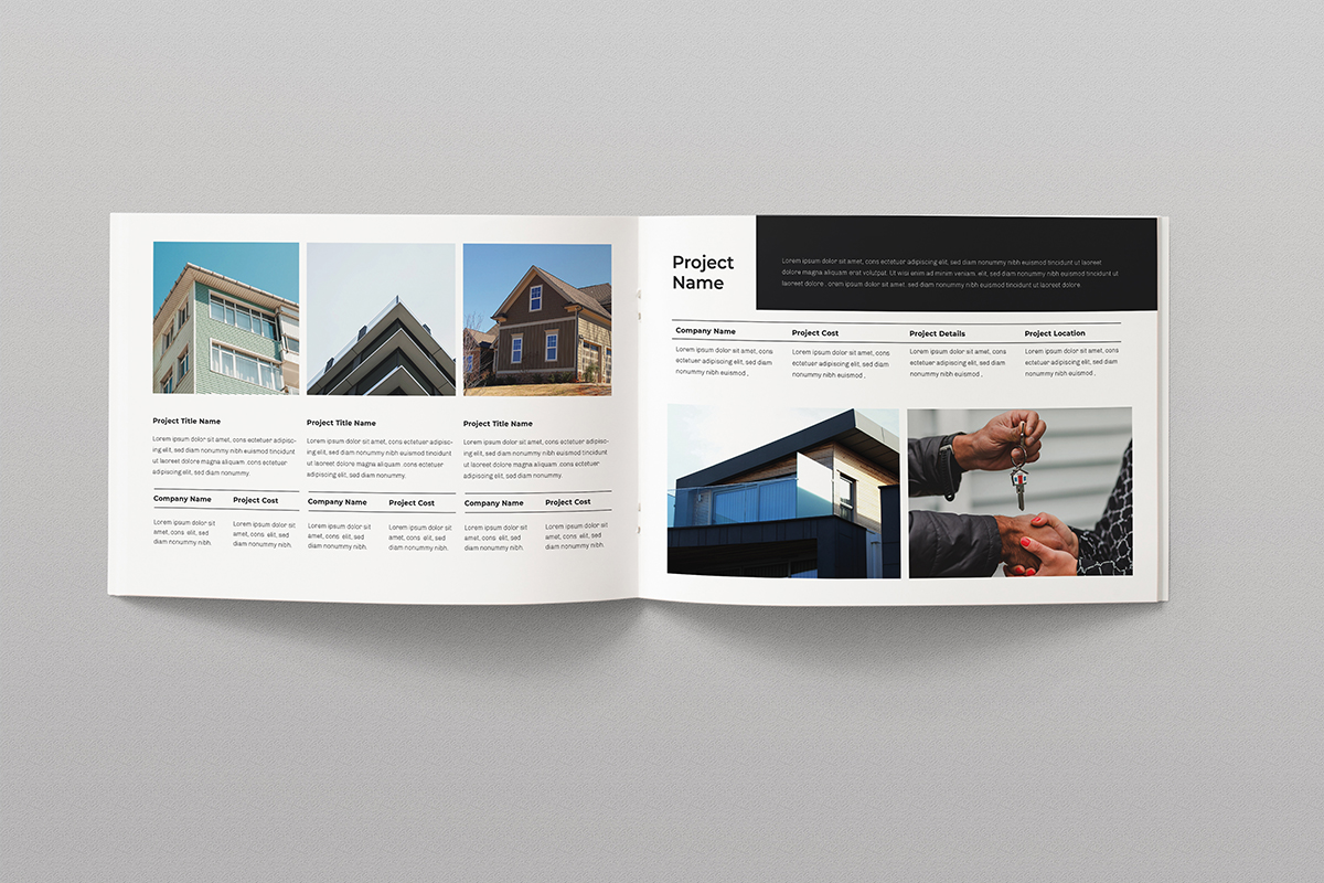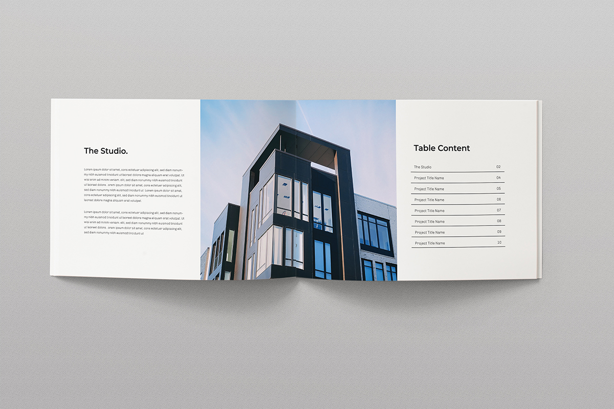 Landscape Portfolio Brochure for any project purpose: portfolio, graphic design portfolio, interior design portfolio, architecture brochure, portfolio, product/graphic design portfolio, Furniture portfolio Living Room, and agency-based projects. All fonts, shapes and other elements are very easy to customize with Adobe Illustrator..