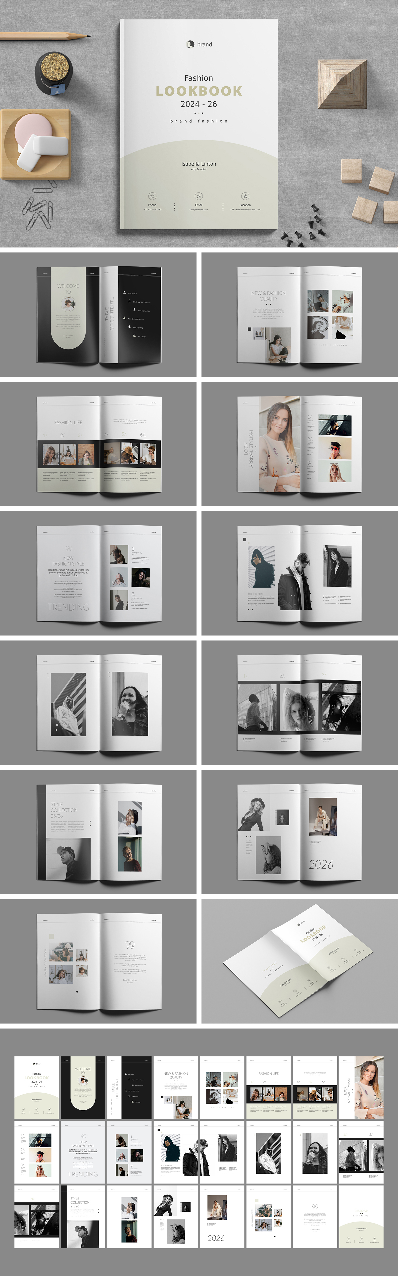 Fashion Look Book Template are Perfect for fashion show display, fashion collection, look Book, model agency, photographer, any portfolio with a lot of pictures like architecture, urban design, magazine or journey presentation