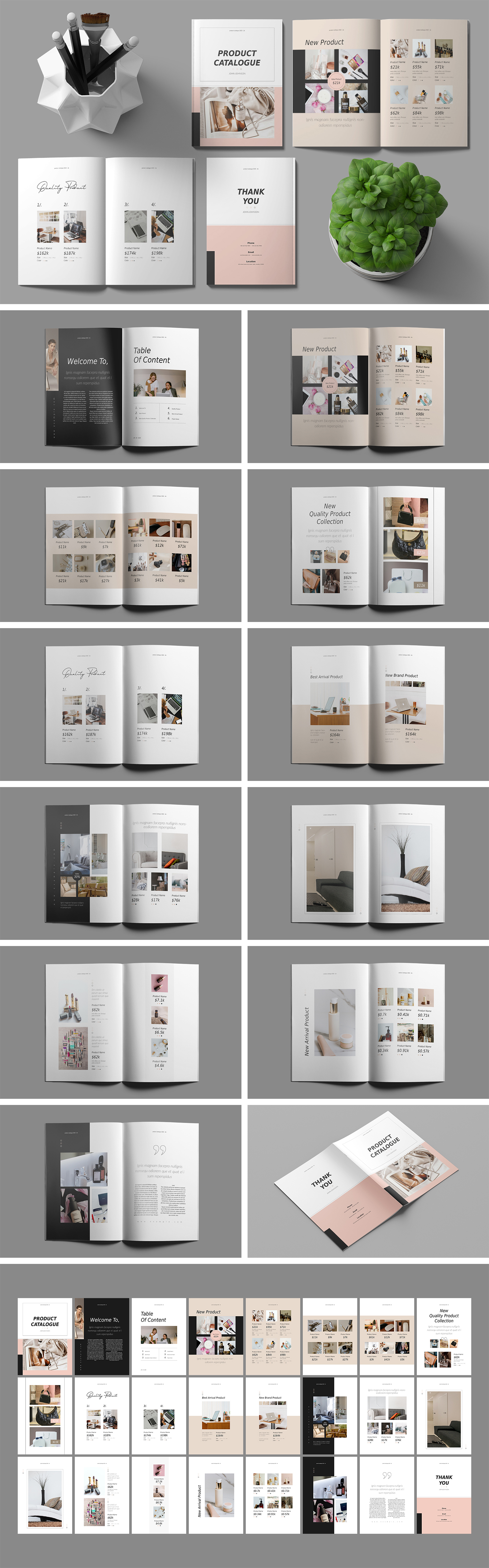 The Product Catalog Template. Very Easy To Use And Customise. Product Catalog designed using Adobe Photoshop_CC format. Can used for portfolio, brochure or catalog. Each page features unique layouts with contemporary typography and then many layouts for the images with titles and descriptions.