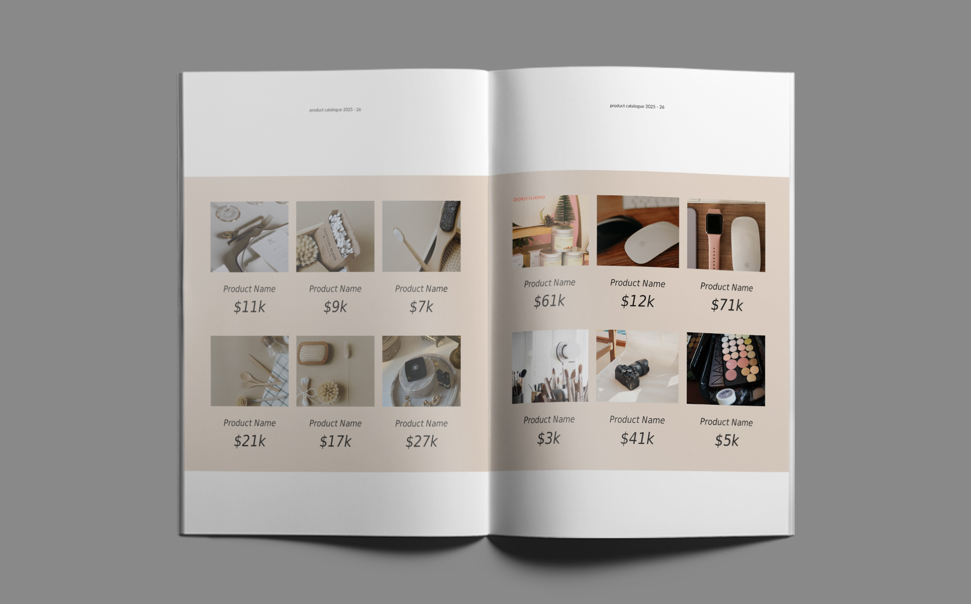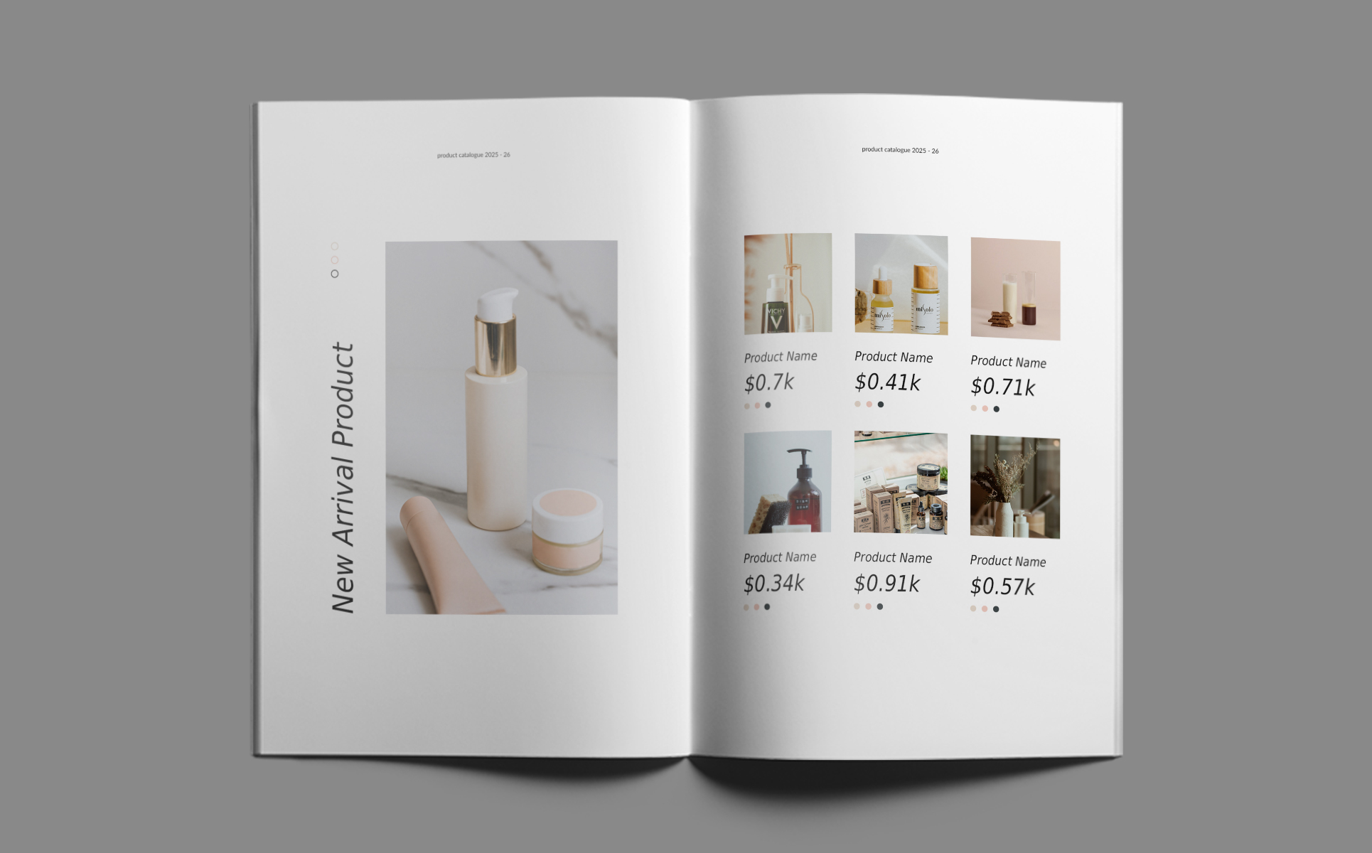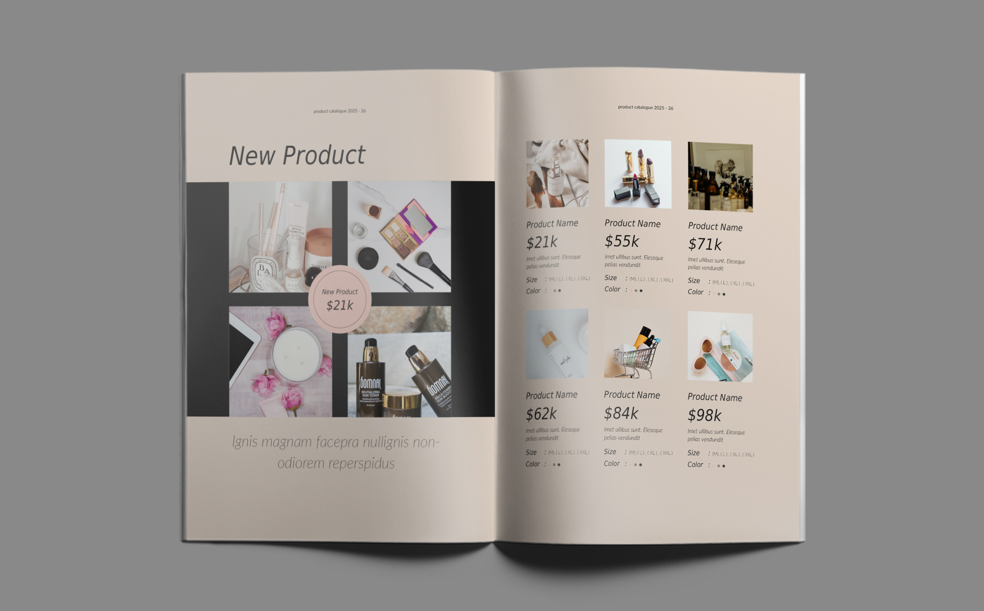 The Product Catalog Template. Very Easy To Use And Customise. Product Catalog designed using Adobe Photoshop_CC format. Can used for portfolio, brochure or catalog. Each page features unique layouts with contemporary typography and then many layouts for the images with titles and descriptions.