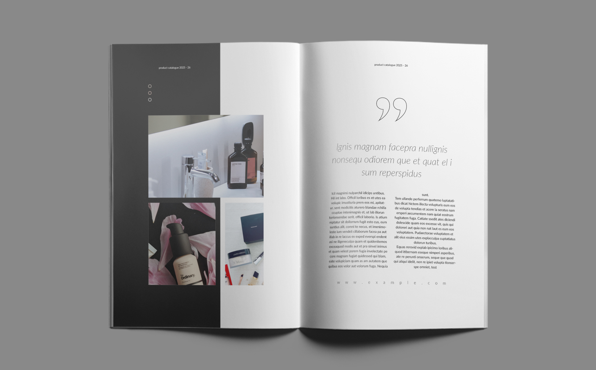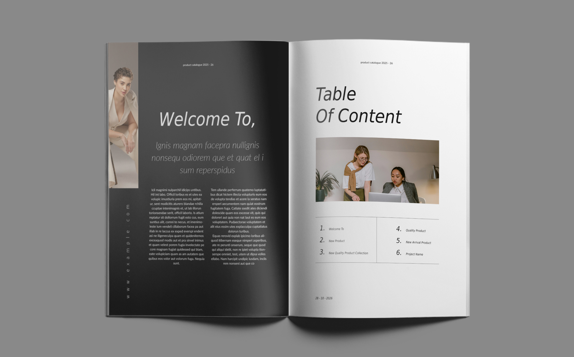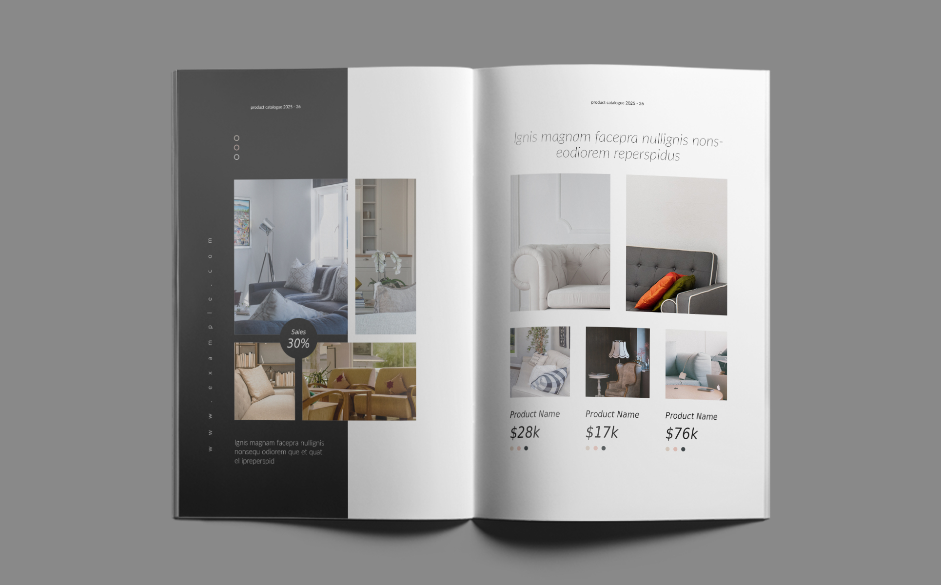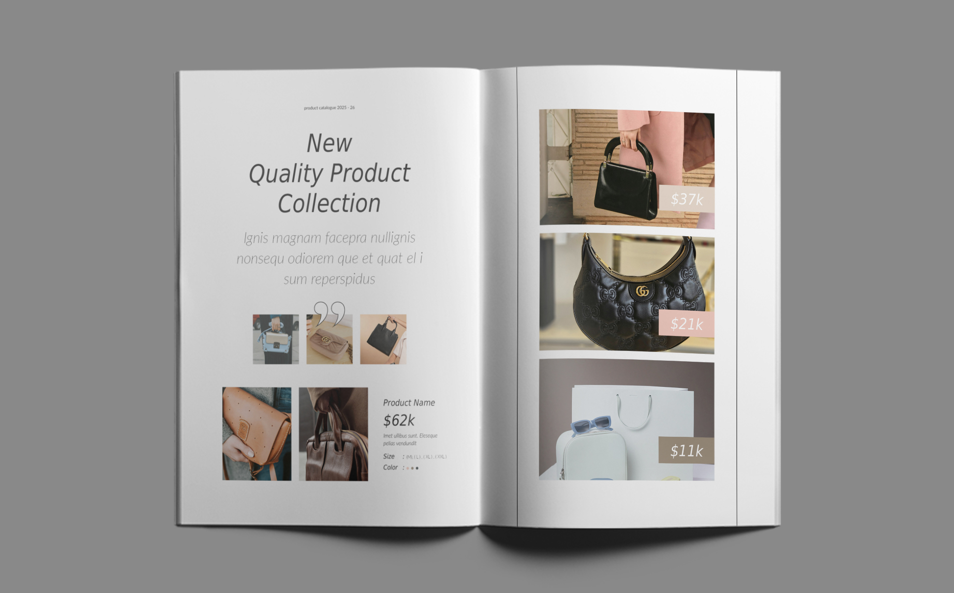 The Product Catalog Template. Very Easy To Use And Customise. Product Catalog designed using Adobe Photoshop_CC format. Can used for portfolio, brochure or catalog. Each page features unique layouts with contemporary typography and then many layouts for the images with titles and descriptions.