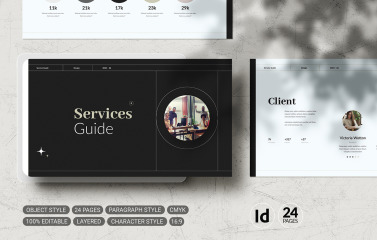 Creative Services Guide can be used to create a stunning first impression to your clients, breaking down what you do, how you work, your process, project timescale and more!.