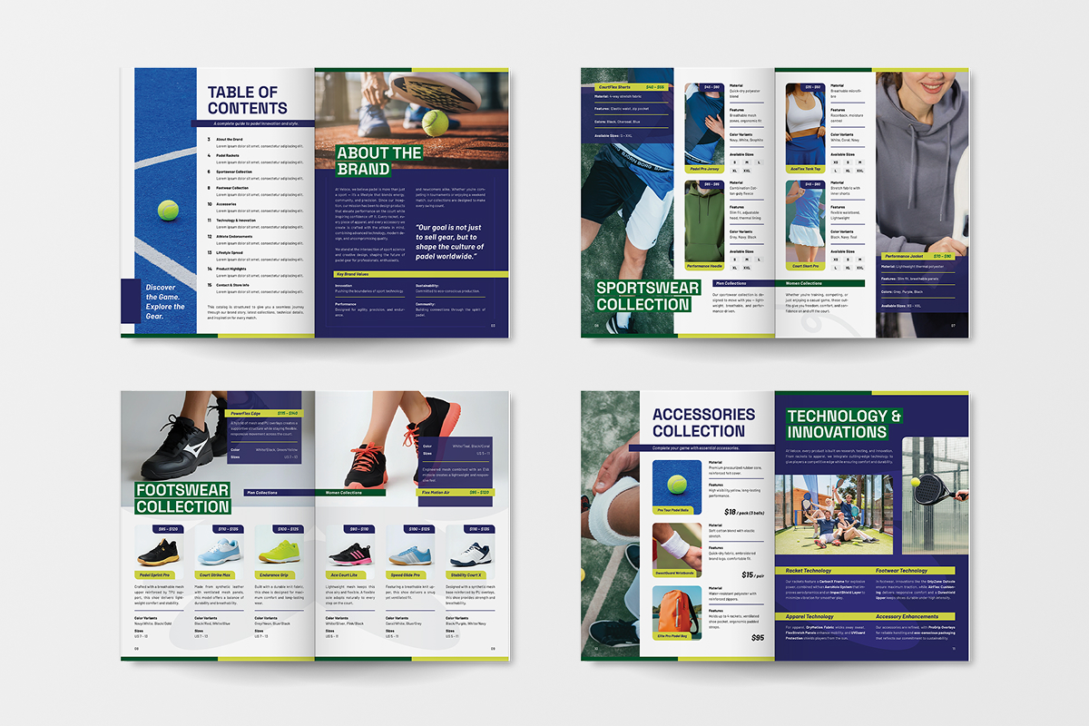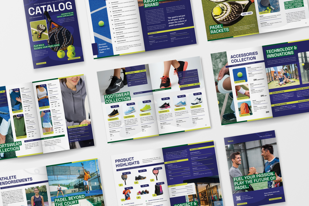 Perfect for sports brands, padel clubs, event organizers, and marketers who need a high-quality, print-ready catalog to promote collections, gear, and tournaments.