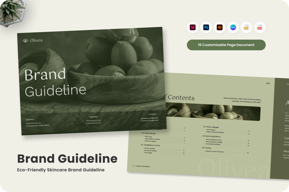 A clean and minimalist brand guideline crafted for eco-friendly skincare. Featuring organic shapes, natural photography, and premium typography, it helps brands present a consistent and professional identity with a sustainable touch.