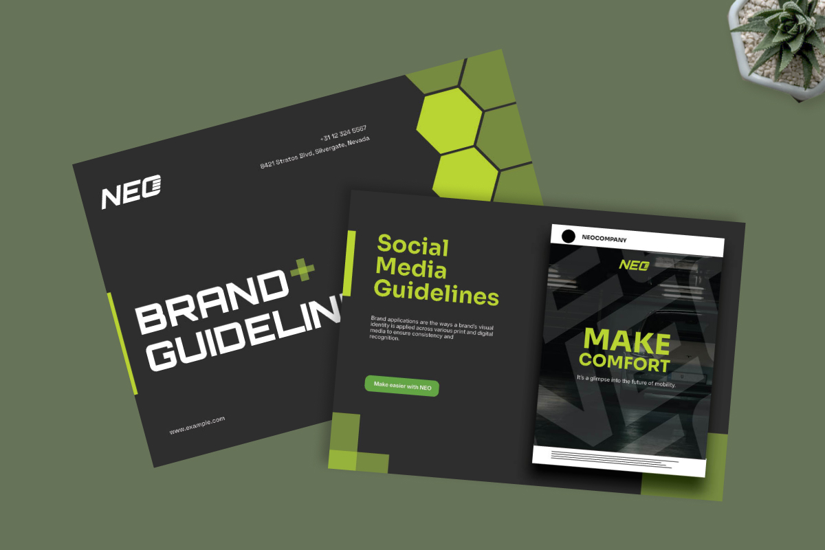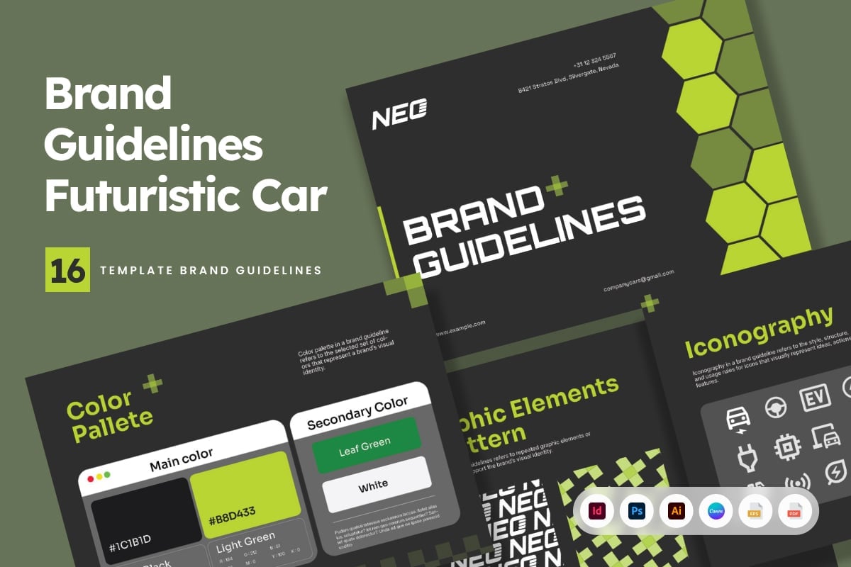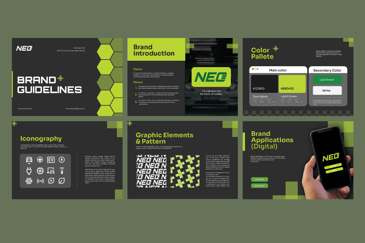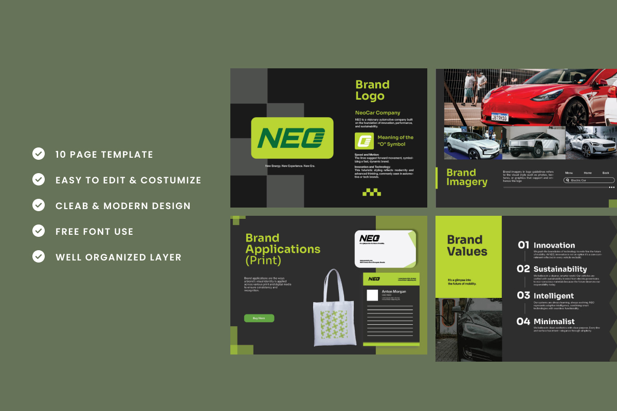 Built for forward-thinking creatives and marketers, this brand guideline brings together sci-fi aesthetics and corporate design. Modular, geometric, and professional—ideal for positioning EV brands as pioneers of the future. Perfect for clean energy, automotive tech, and smart innovation sectors.