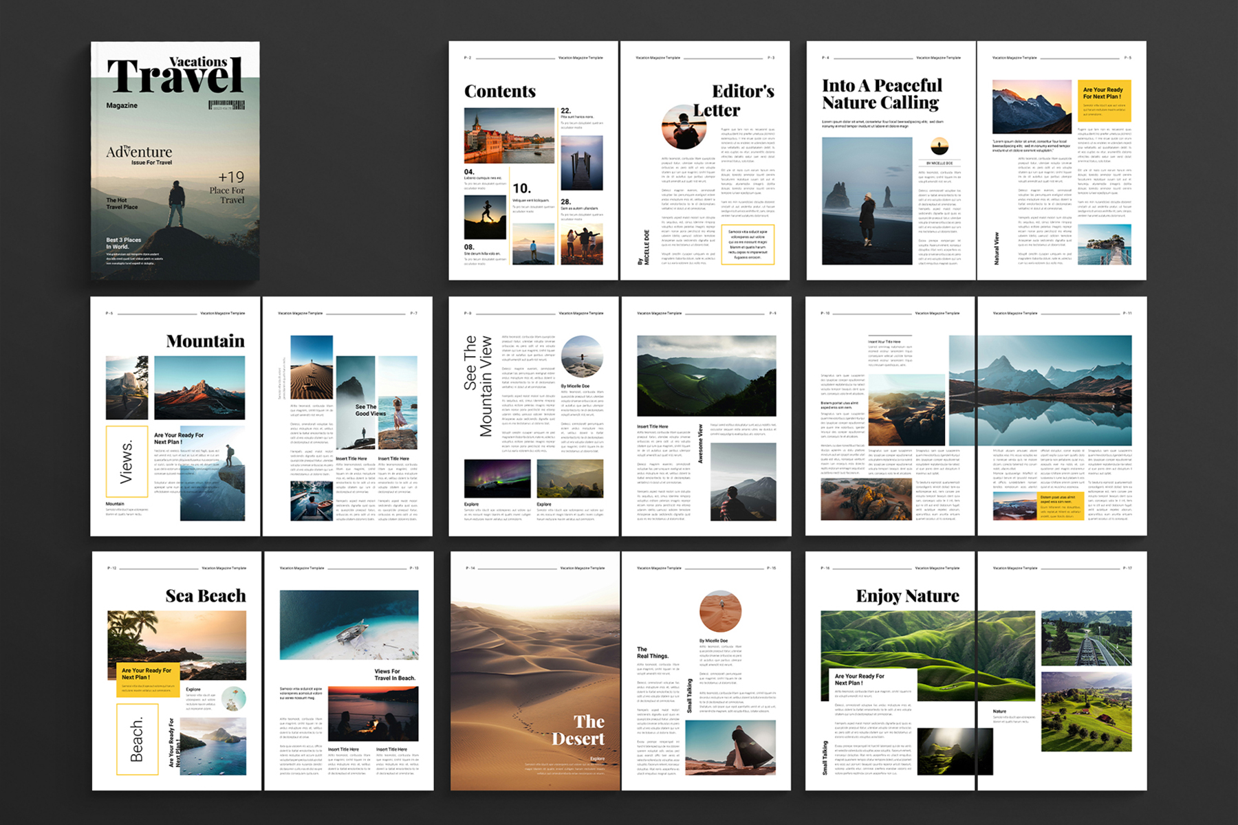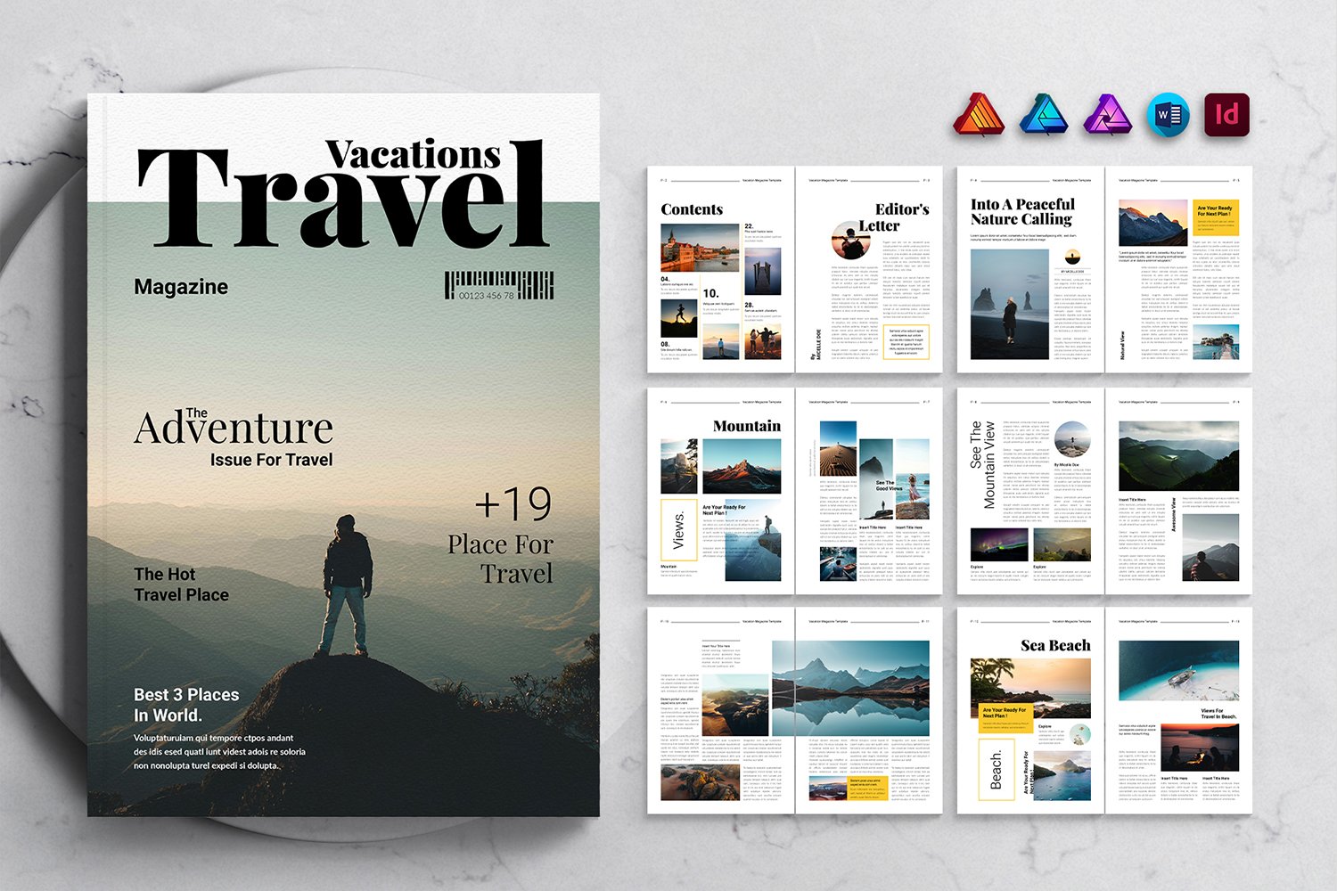 Travel and Vacation Magazine Template for MS Word, InDesign, Affinity Suites