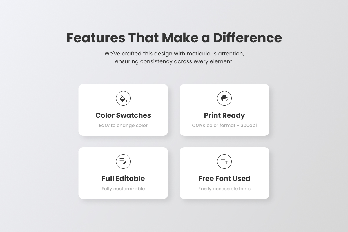 - **Standard A4 Size:** Landscape orientation with bleed included. Suitable for global business needs, easy to print and send.