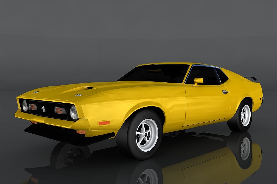 1971 Ford Mustang low-poly 3d model ready for Virtual Reality (VR), Augmented Reality (AR), games and other real-time apps.