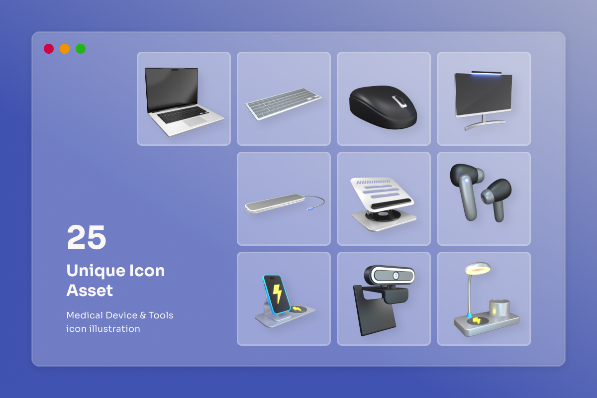 A clean and stylish 3D icon collection made for professionals who want to visualize their digital workspace with clarity and elegance. Perfect for landing pages, UI previews, app mockups, or creative assets that need premium gadget visuals. Ideal for designers seeking polished, realistic, and modern tech aesthetics.