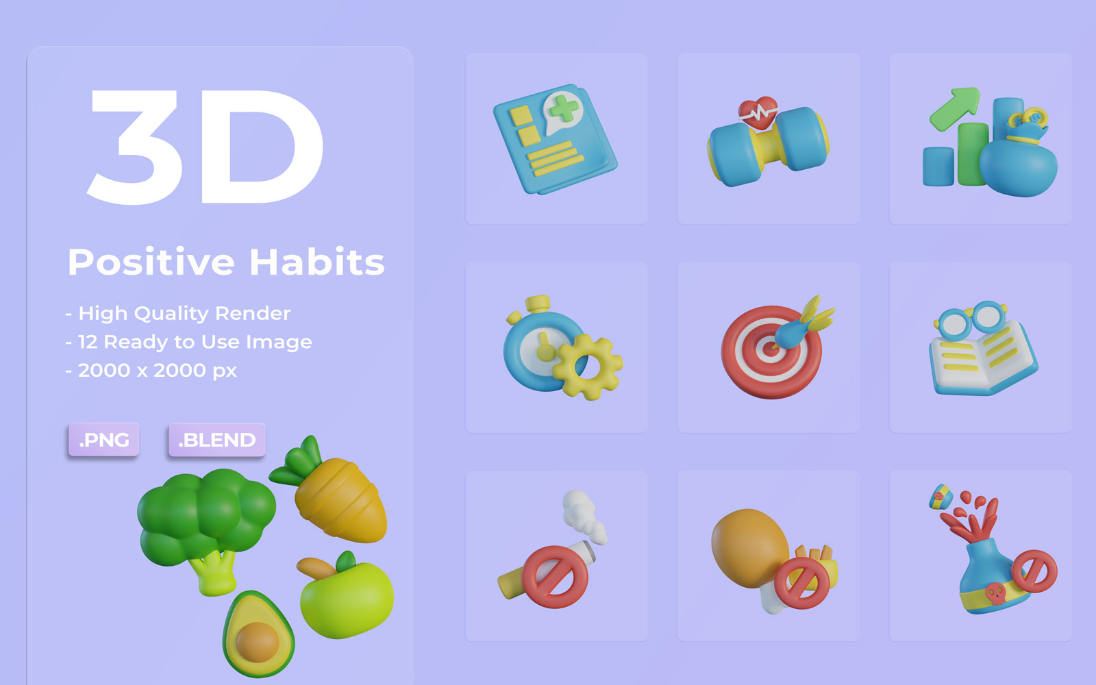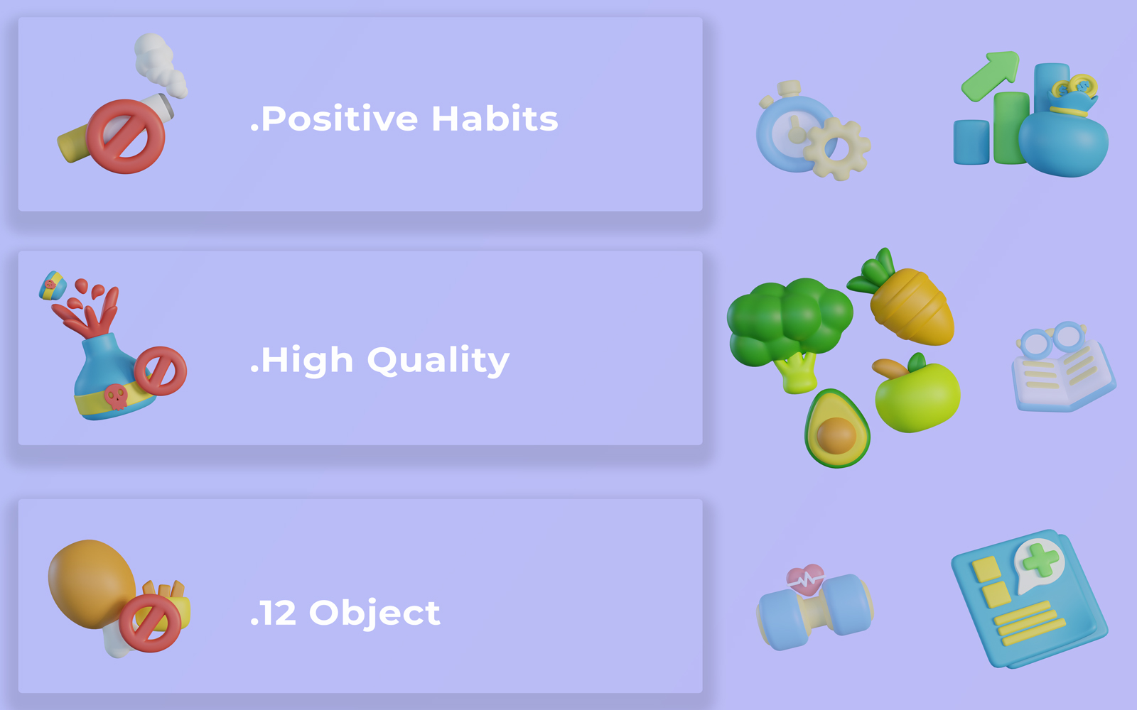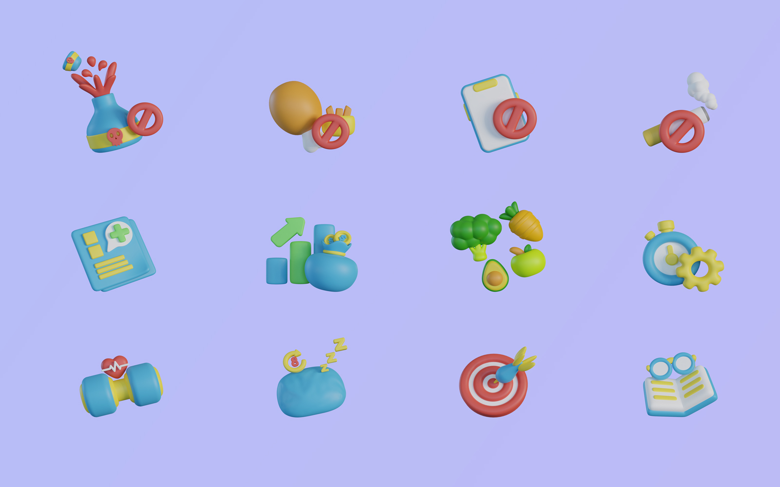 3D Positive Habits Icon Bundle Model