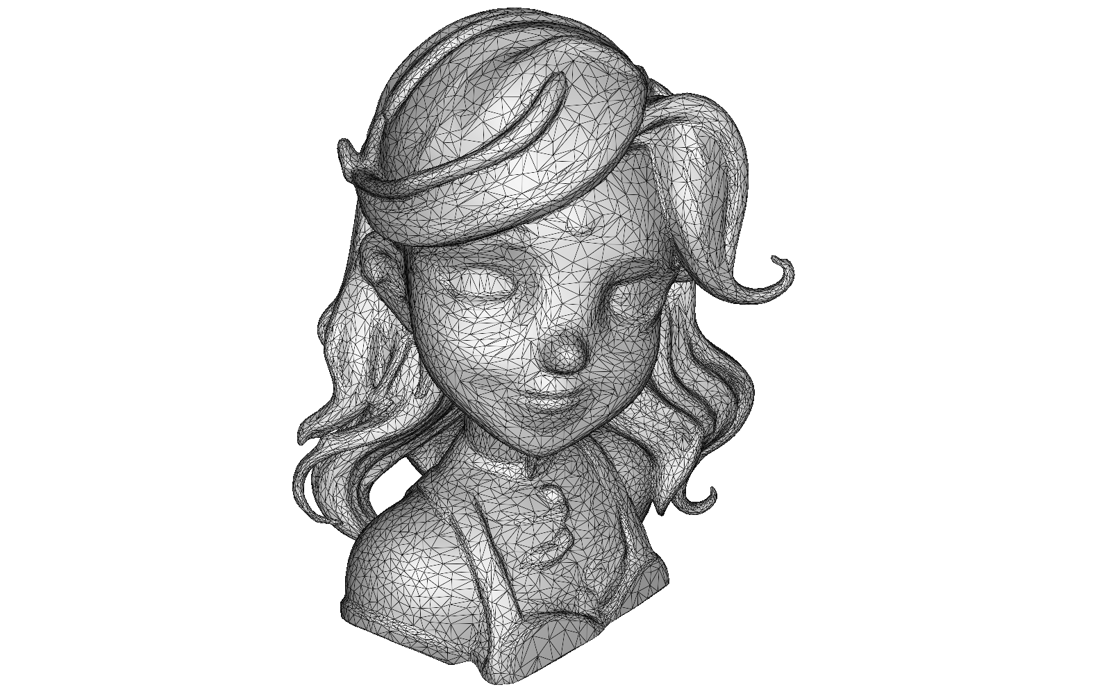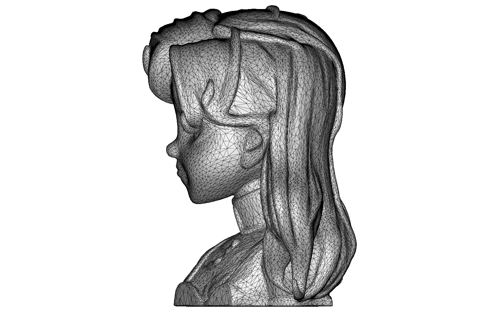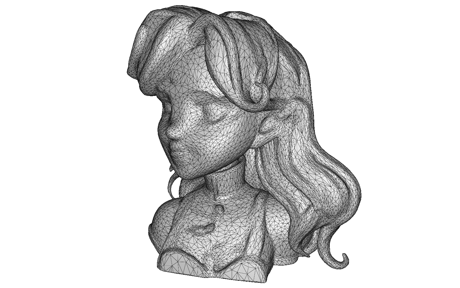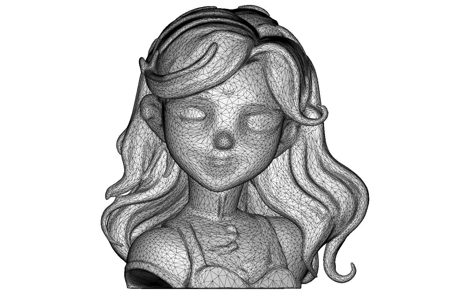 The model appears to have good structural integrity with no obvious overhangs that would cause printing issues. The facial details and hair curls are well-defined and should print clearly with the right settings.