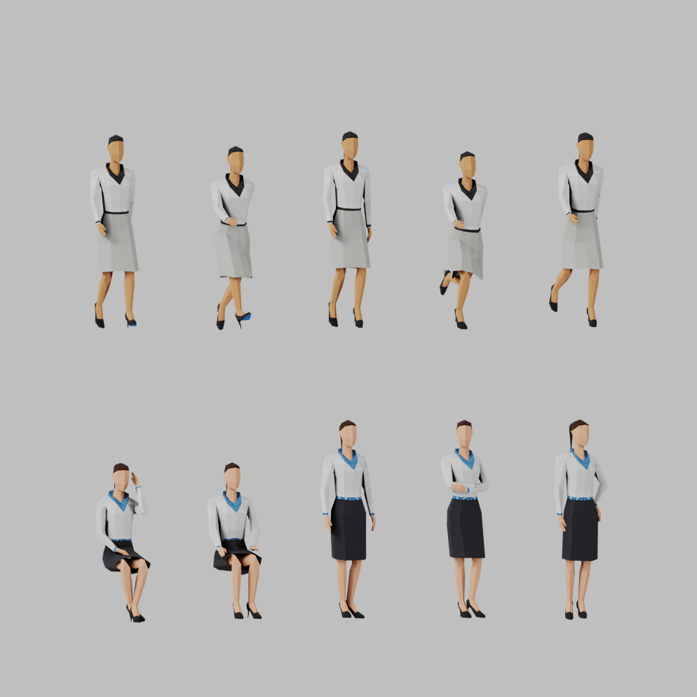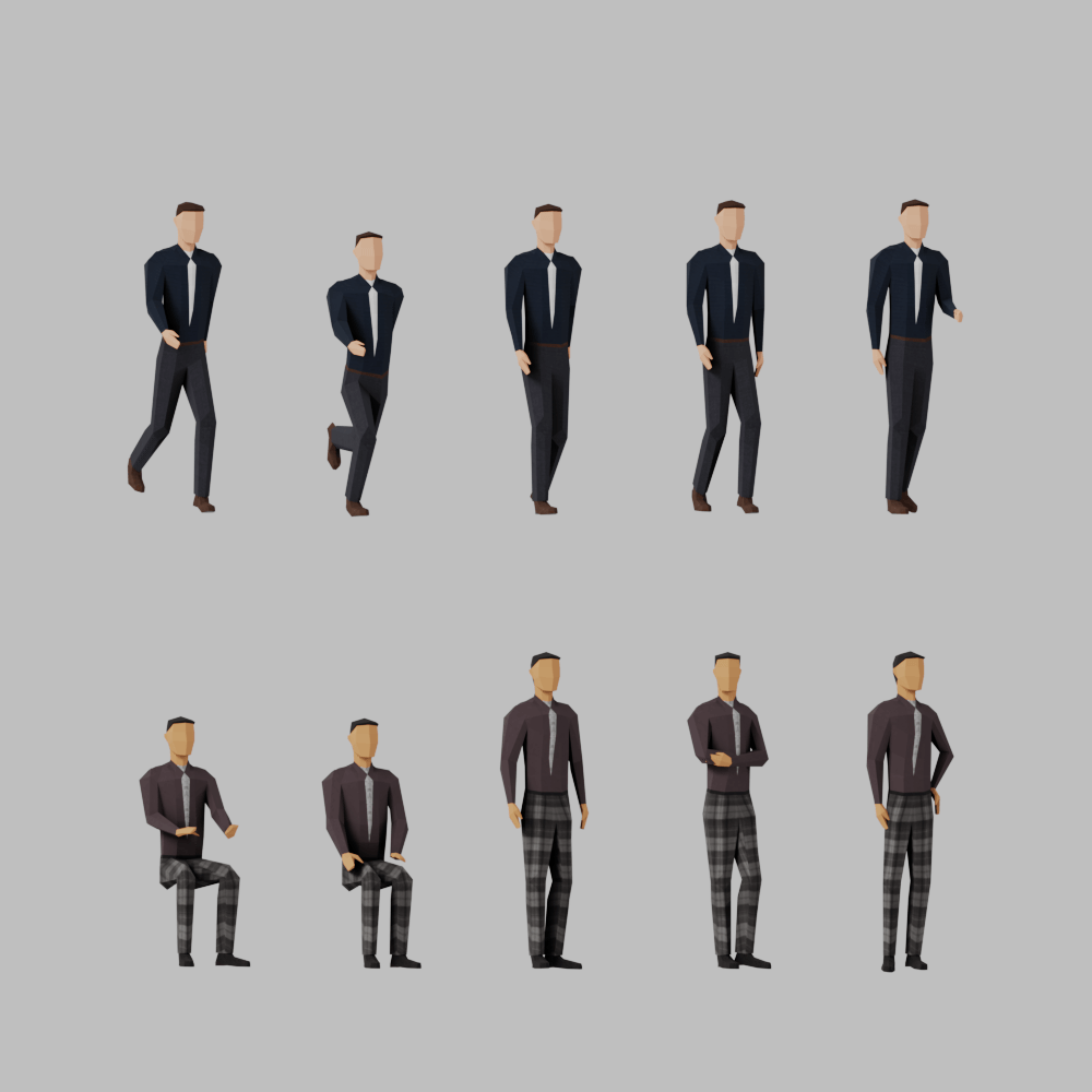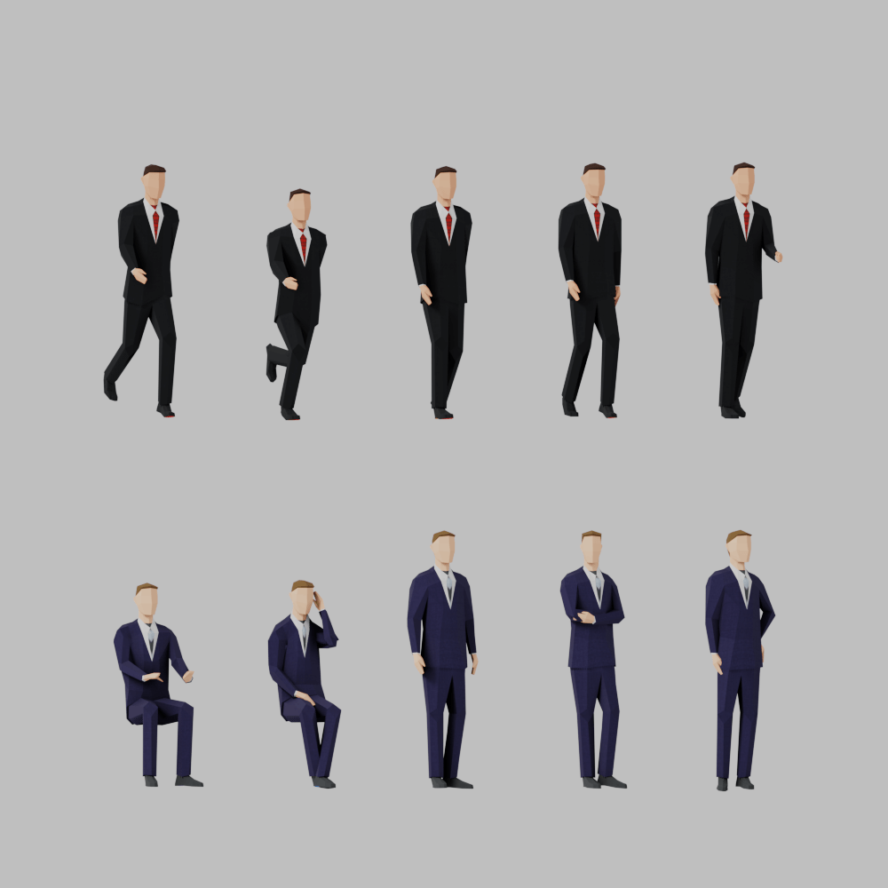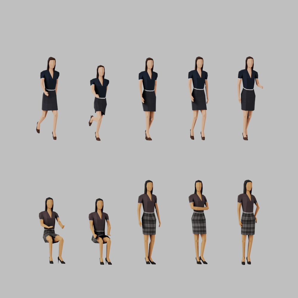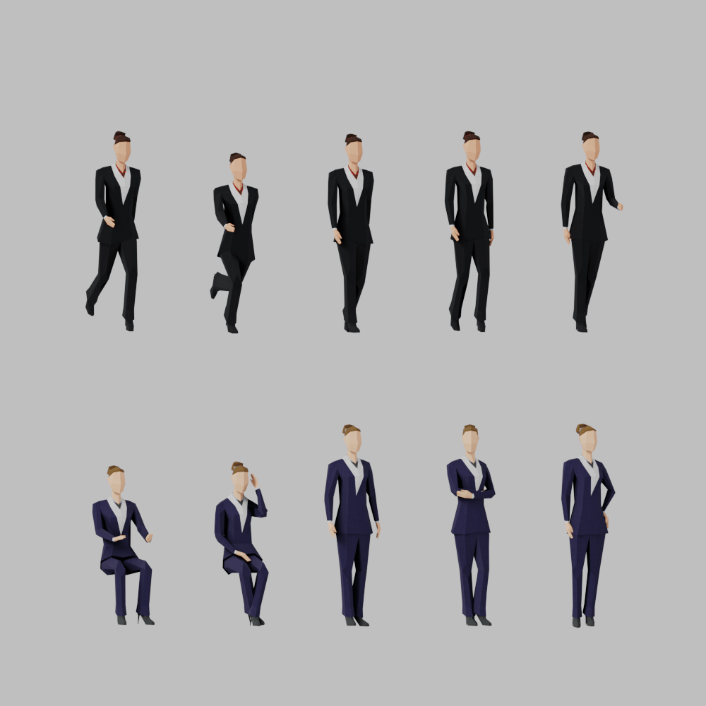 Lowpoly posed people for office and business related scenes.