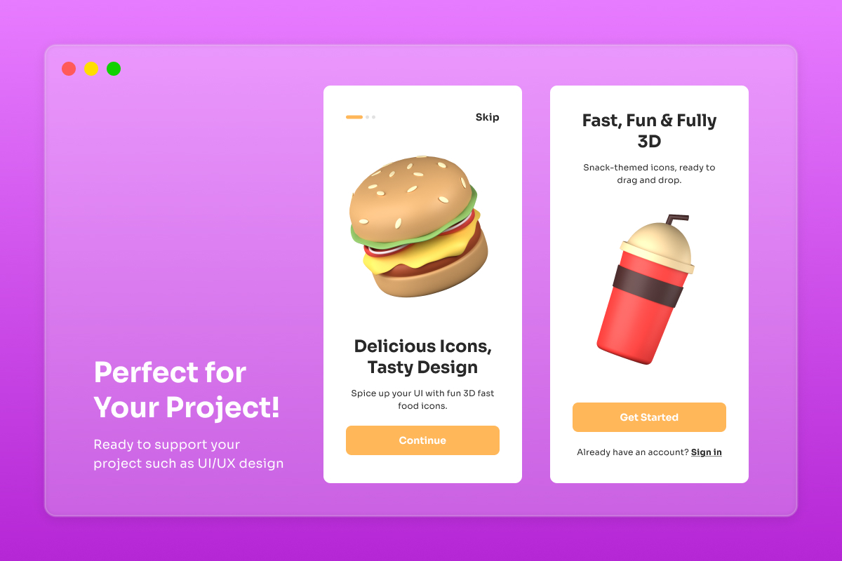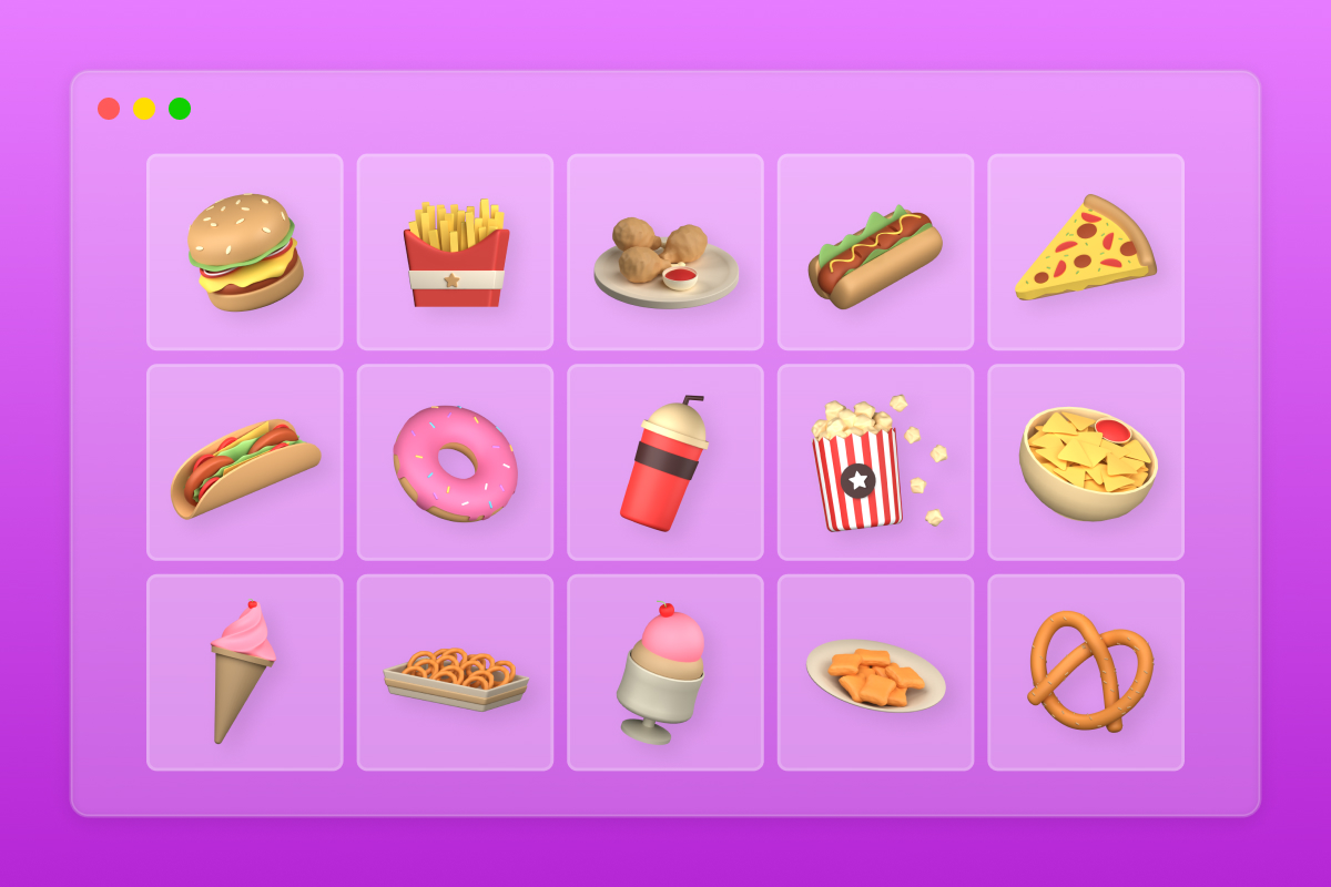 A delightful pack of high-res 3D icons designed to make any food-themed project pop. From melty cheese to fizzy soda, each icon is infused with character and clarity—ideal for designers needing fun, lightweight visuals that work across web, print, and mobile.