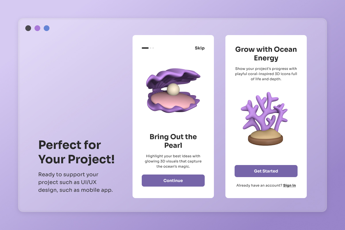 Capture the spirit of the sea with this coastal-themed 3D icon set. Its soft color palette, rounded forms, and warm light create a balanced mix of realism and playfulness perfect for brands, travel projects, and digital designs that celebrate marine life.