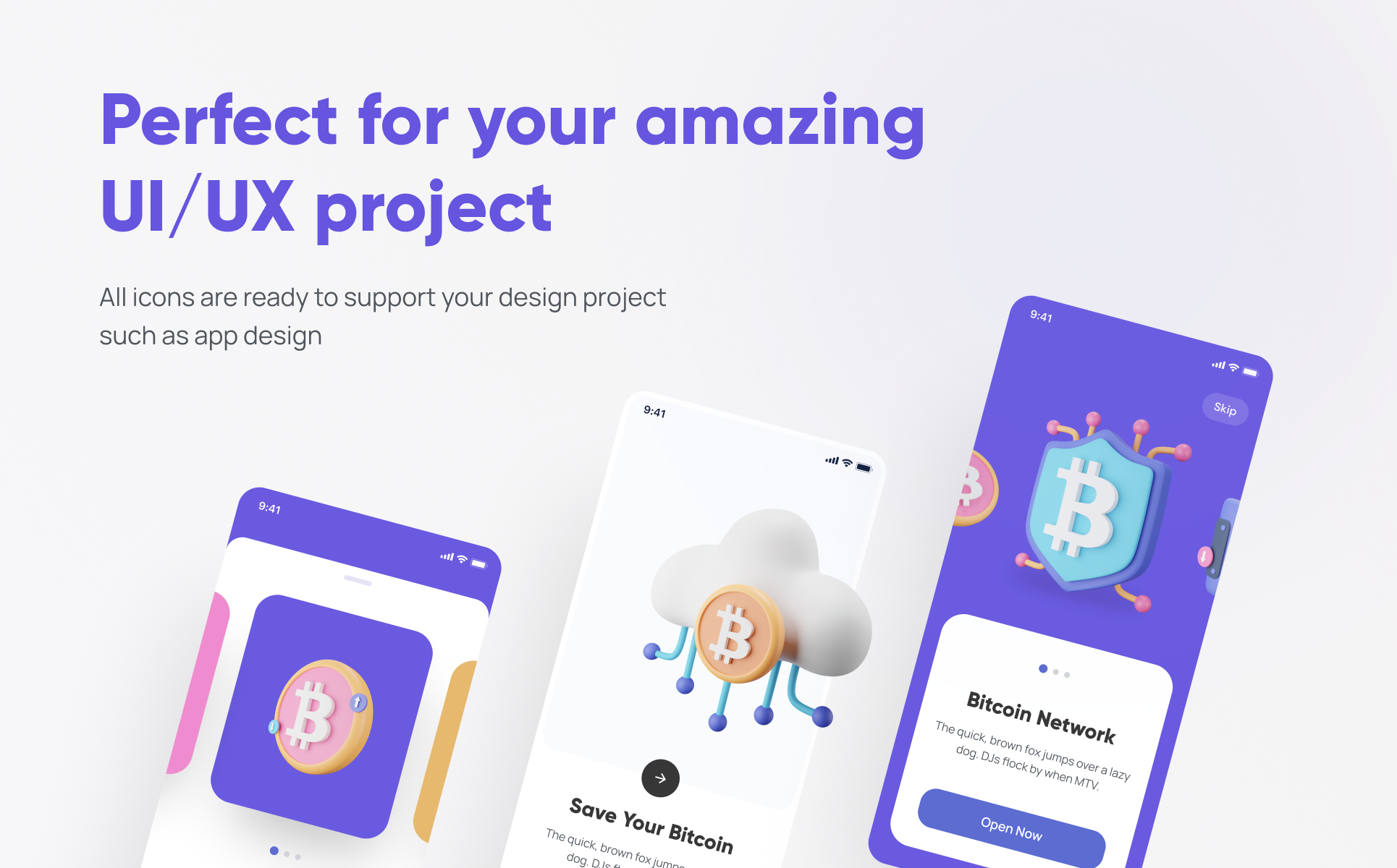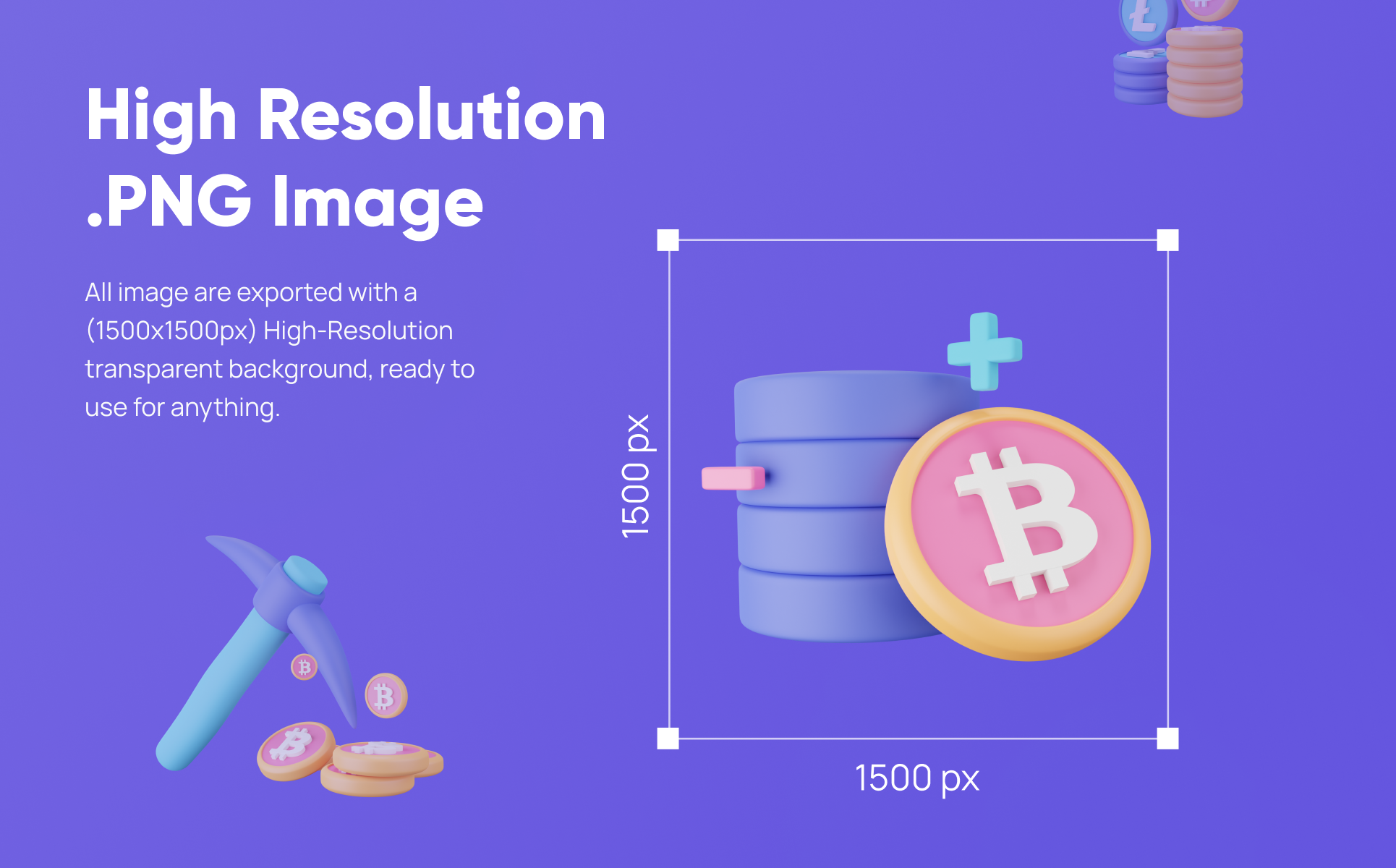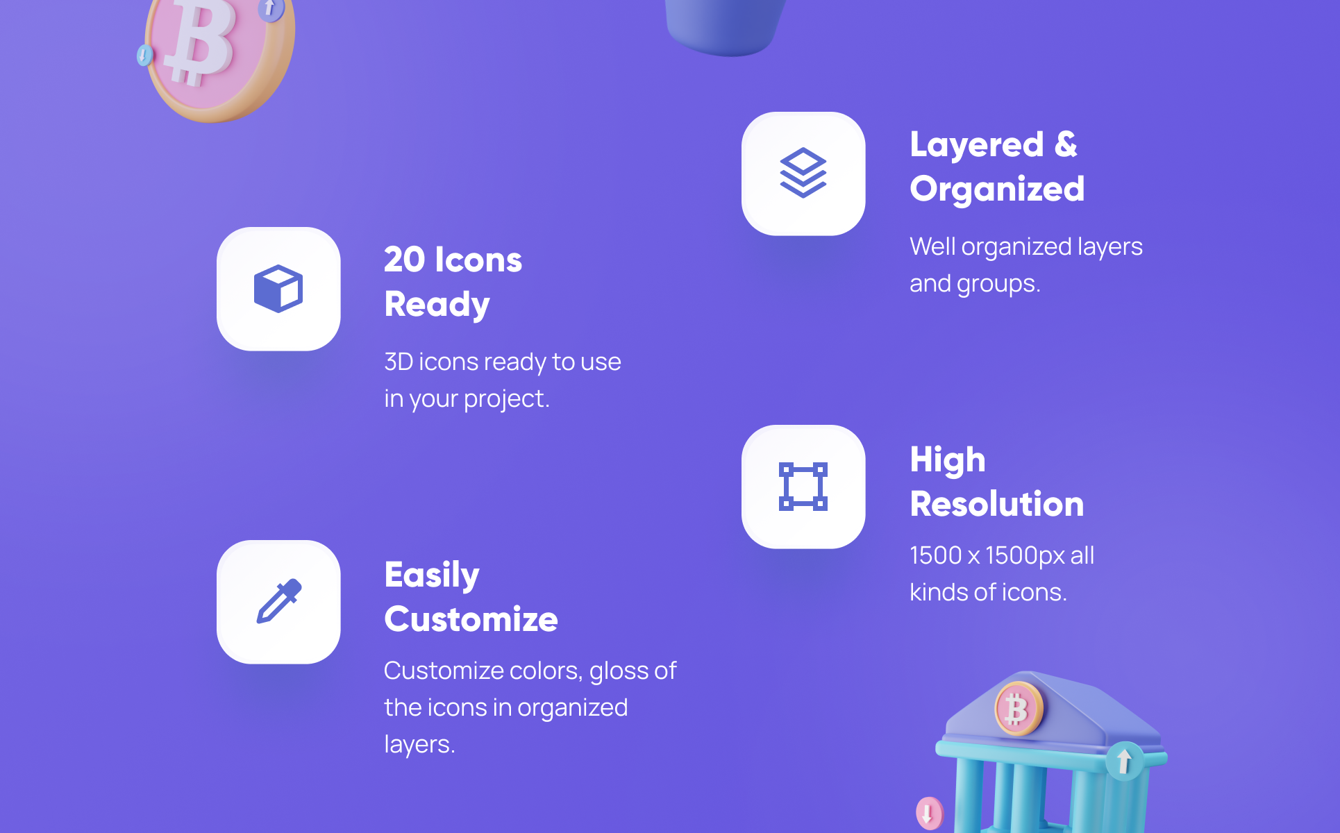 Coiny is a pack of custom 3D icons suitable for any Cryptocurrency product. Make your next product and project more stunning with 3D Icons.