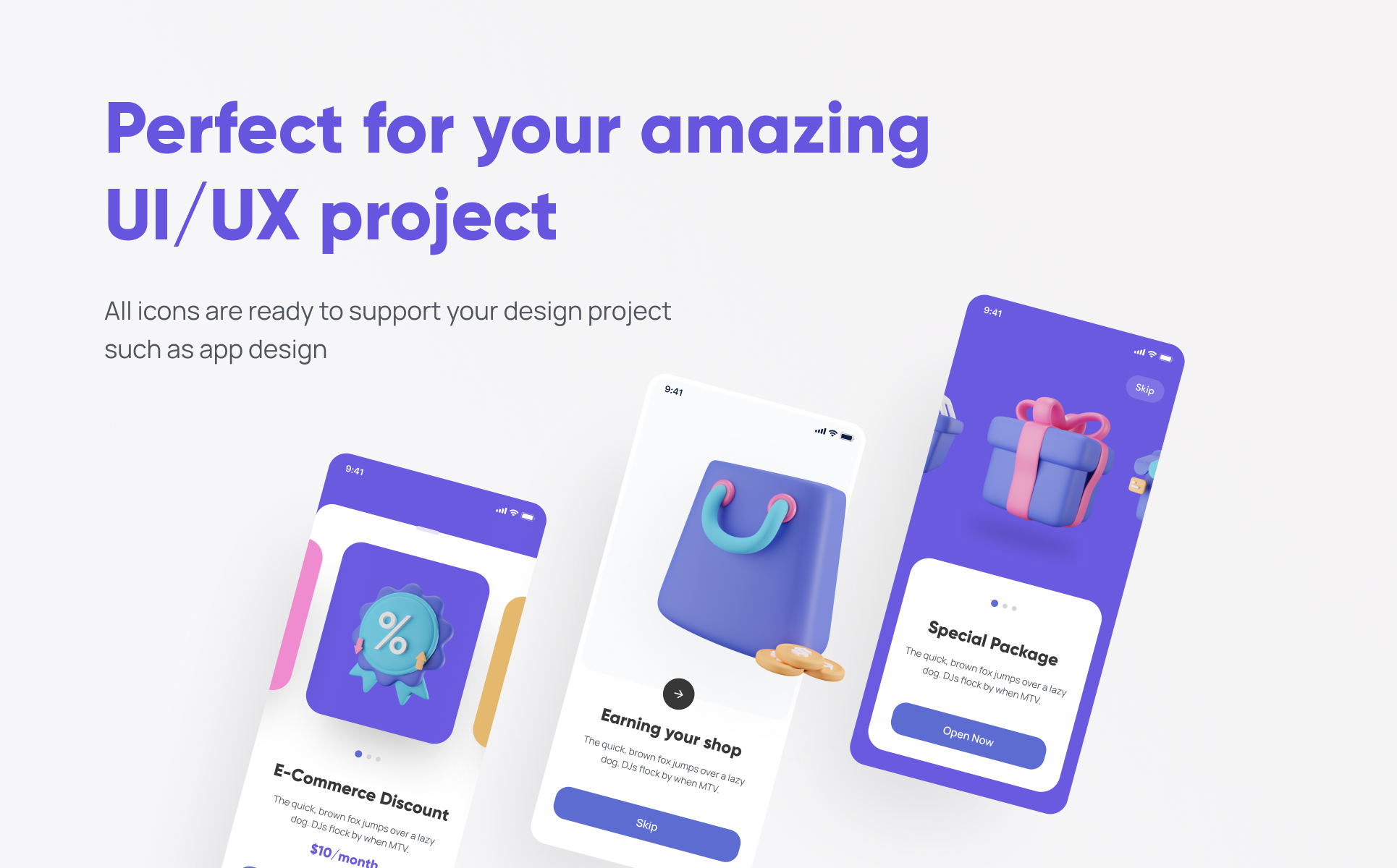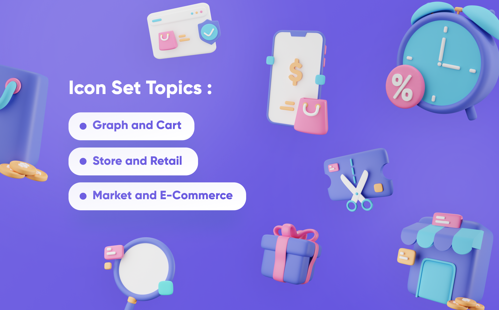 Commercially is a pack of custom 3D icons suitable for any E-Commerce product. Make your next product and project more stunning with 3D Icons.