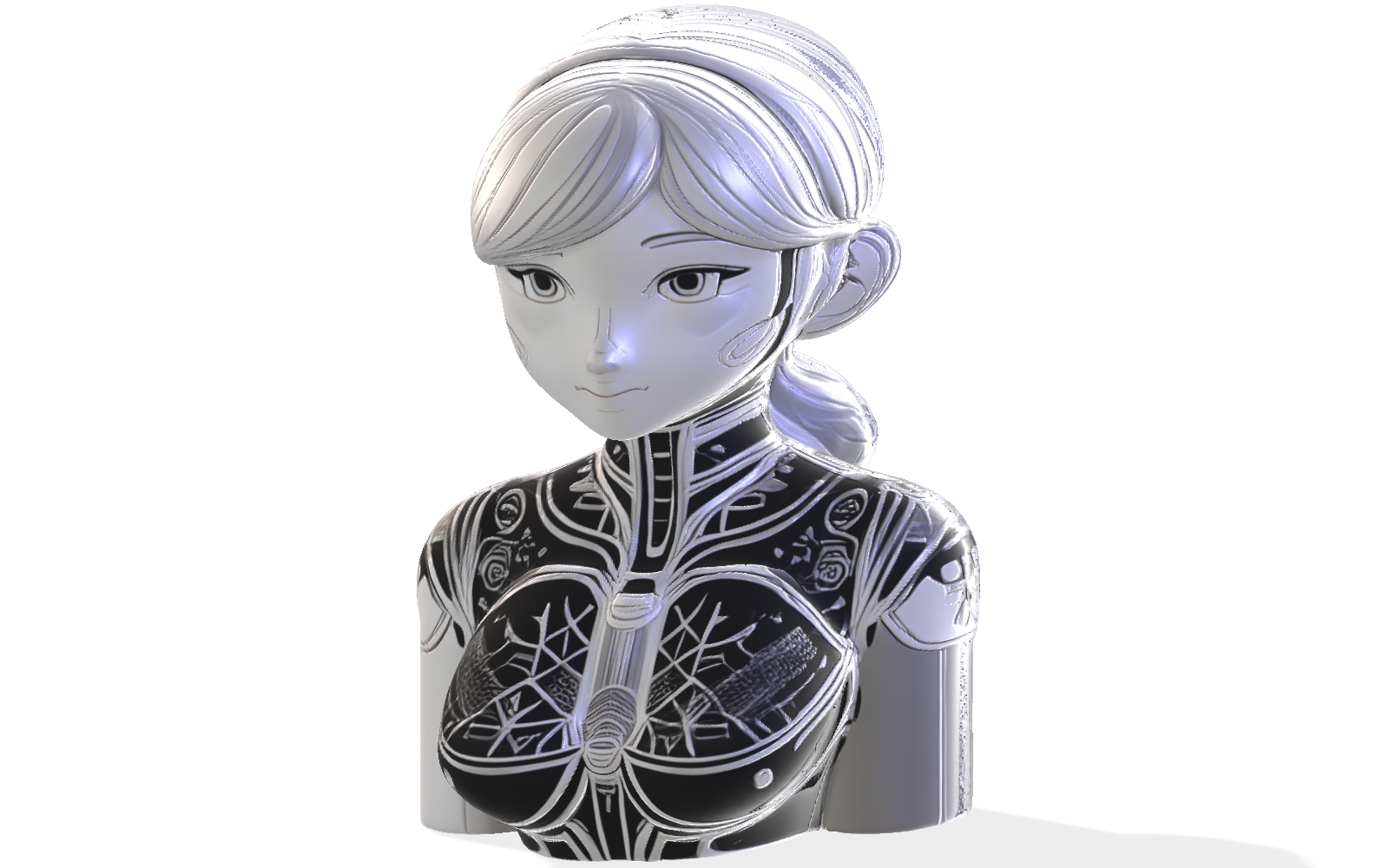 Meet our futuristic companion bust! This design showcases a sleek, cybernetic aesthetic that blends organic shapes with mechanical patterns. The upper torso features detailed circuitry lines, giving a sense of intricate technology woven into the character’s form. Its smooth surfaces and gentle curves convey a friendly, almost serene vibe—perfect for displaying as a decorative art piece or as inspiration for your next sci-fi project.