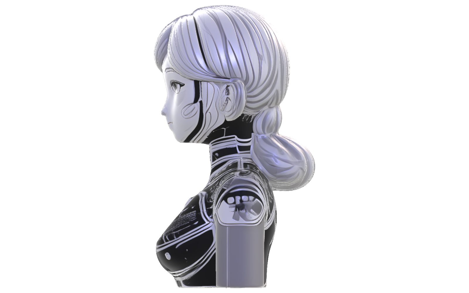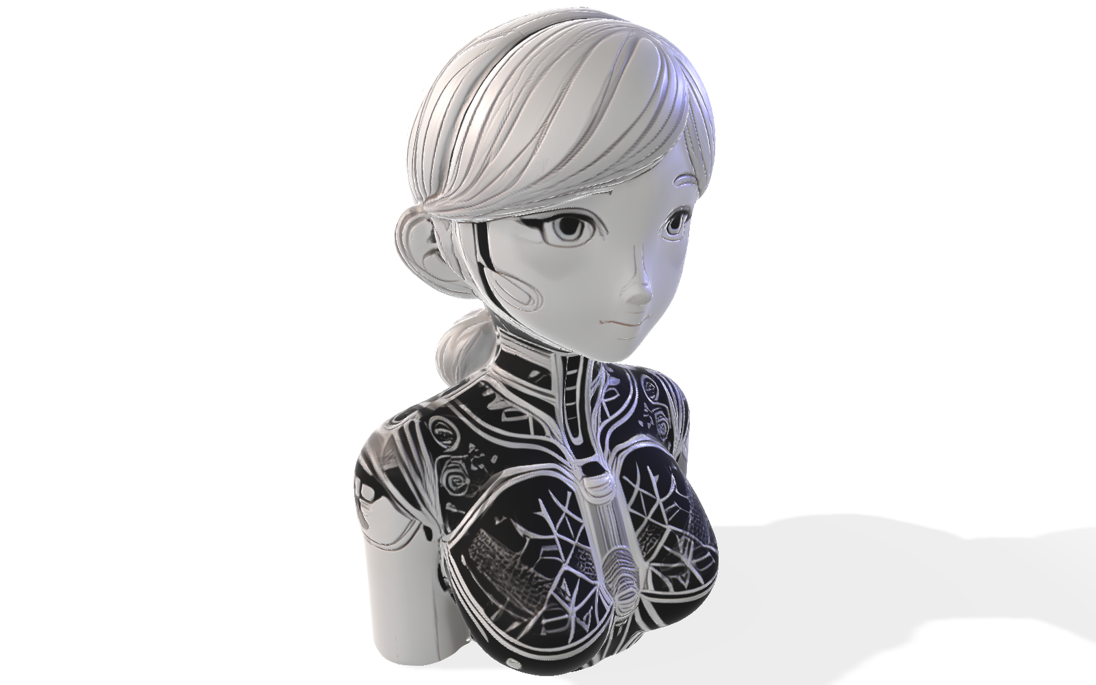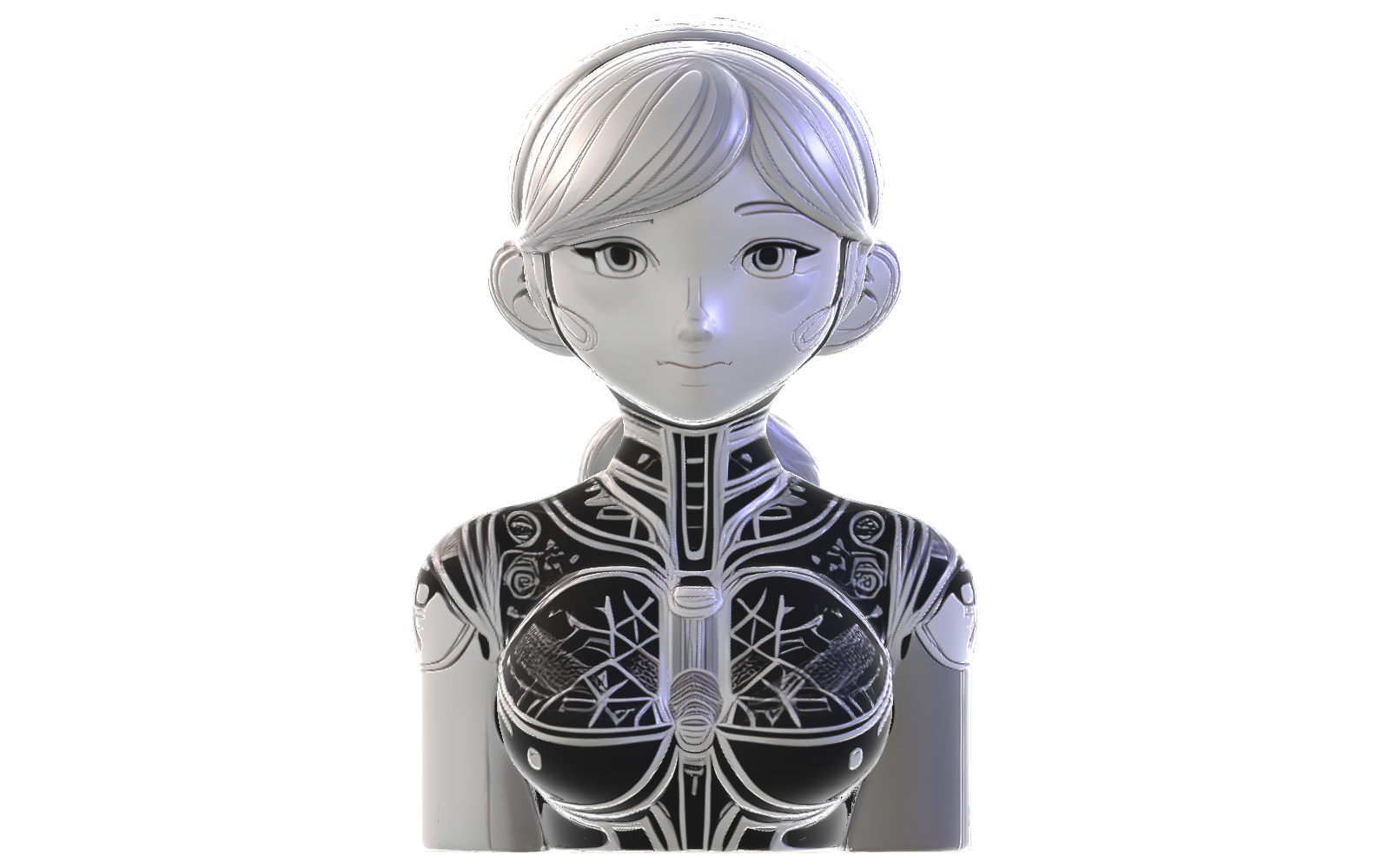 Meet our futuristic companion bust! This design showcases a sleek, cybernetic aesthetic that blends organic shapes with mechanical patterns. The upper torso features detailed circuitry lines, giving a sense of intricate technology woven into the character’s form. Its smooth surfaces and gentle curves convey a friendly, almost serene vibe—perfect for displaying as a decorative art piece or as inspiration for your next sci-fi project.