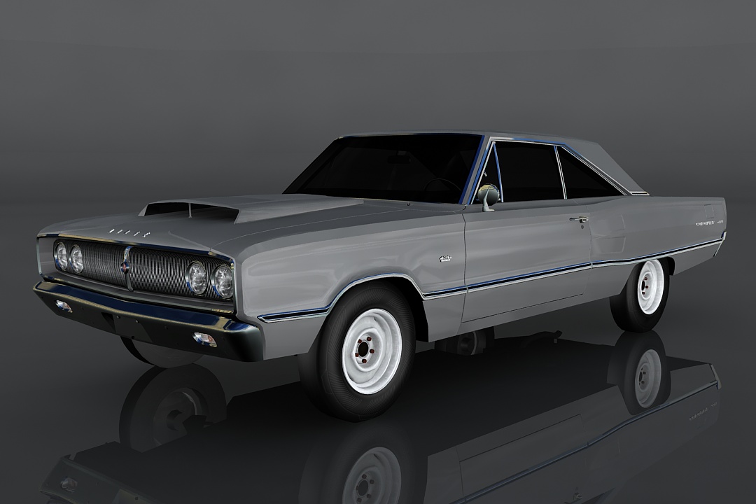 1967 Dodge Coronet low-poly 3d model ready for Virtual Reality (VR), Augmented Reality (AR), games and other real-time apps.