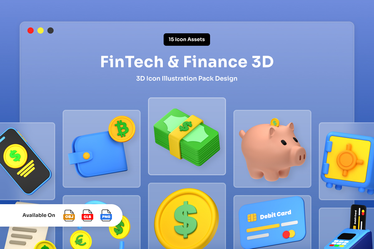 FinTech 3D Finance Icon Pack Model