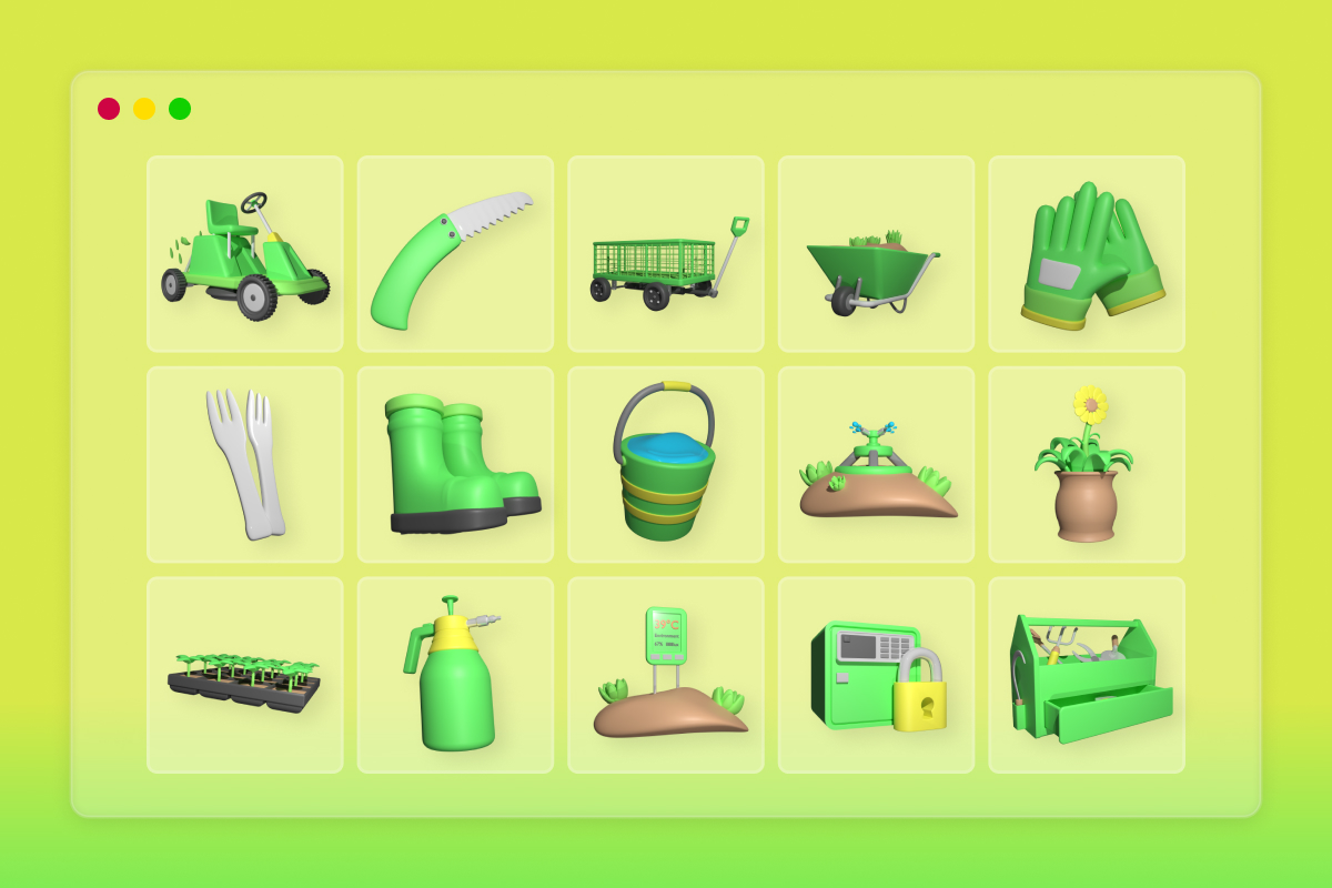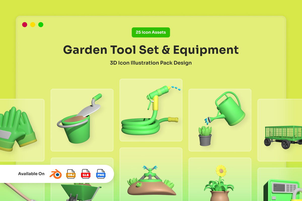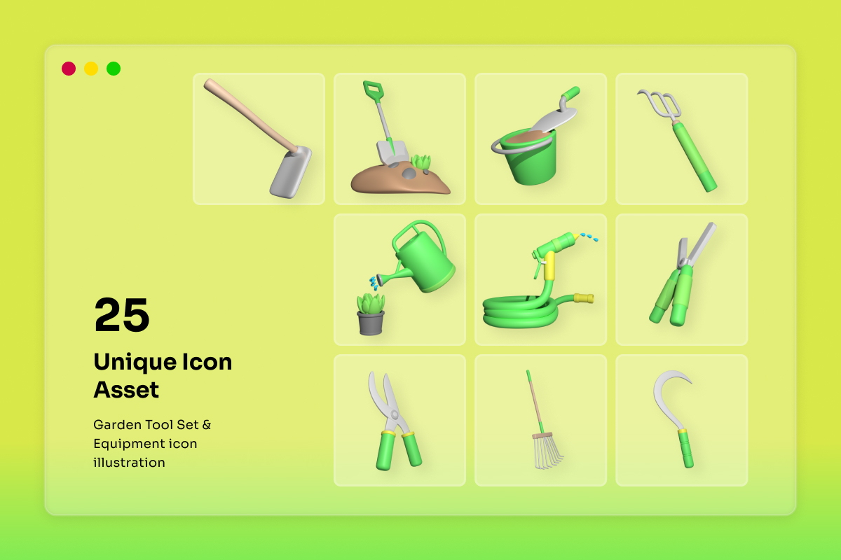 Garden Tool Set and Equipment 3D Icon Pack Model