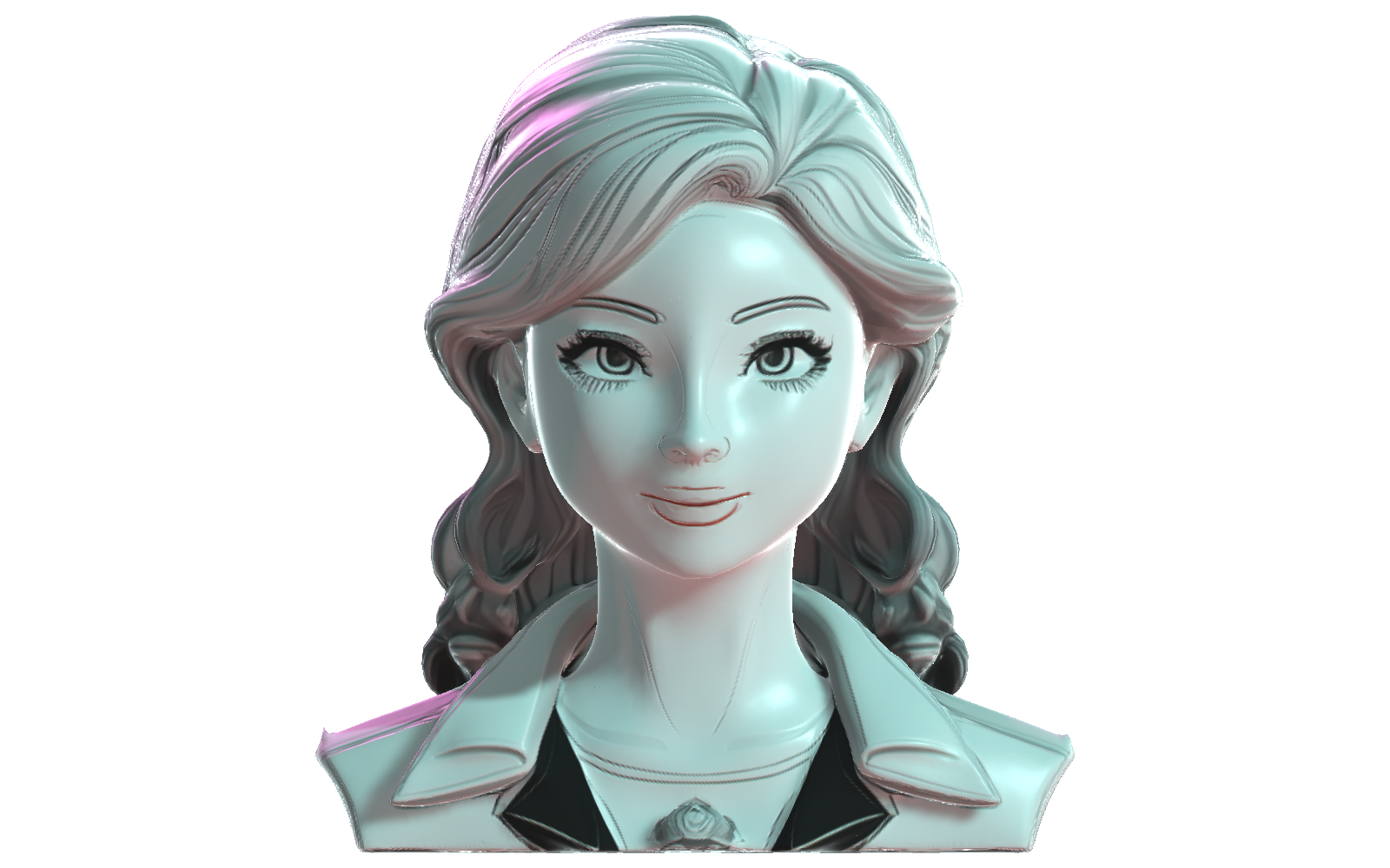 Meet the “Graceful Muse,” a stylized female bust that embodies elegance and confidence. Her hair is gently swept back, showcasing refined details around the face and a poised expression. The design features a subtle outfit collar and a decorative pendant at the neck, adding an extra touch of charm. This 3D model strikes a balance between simplicity and detail, making it an appealing display piece for desks, shelves, or artistic collections.