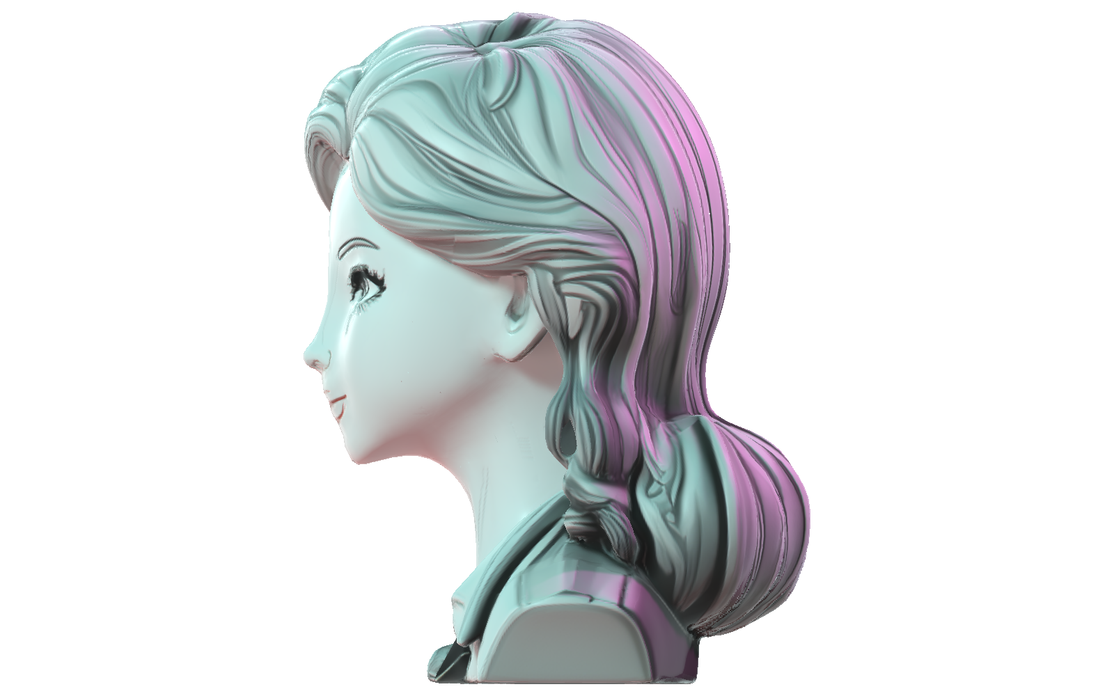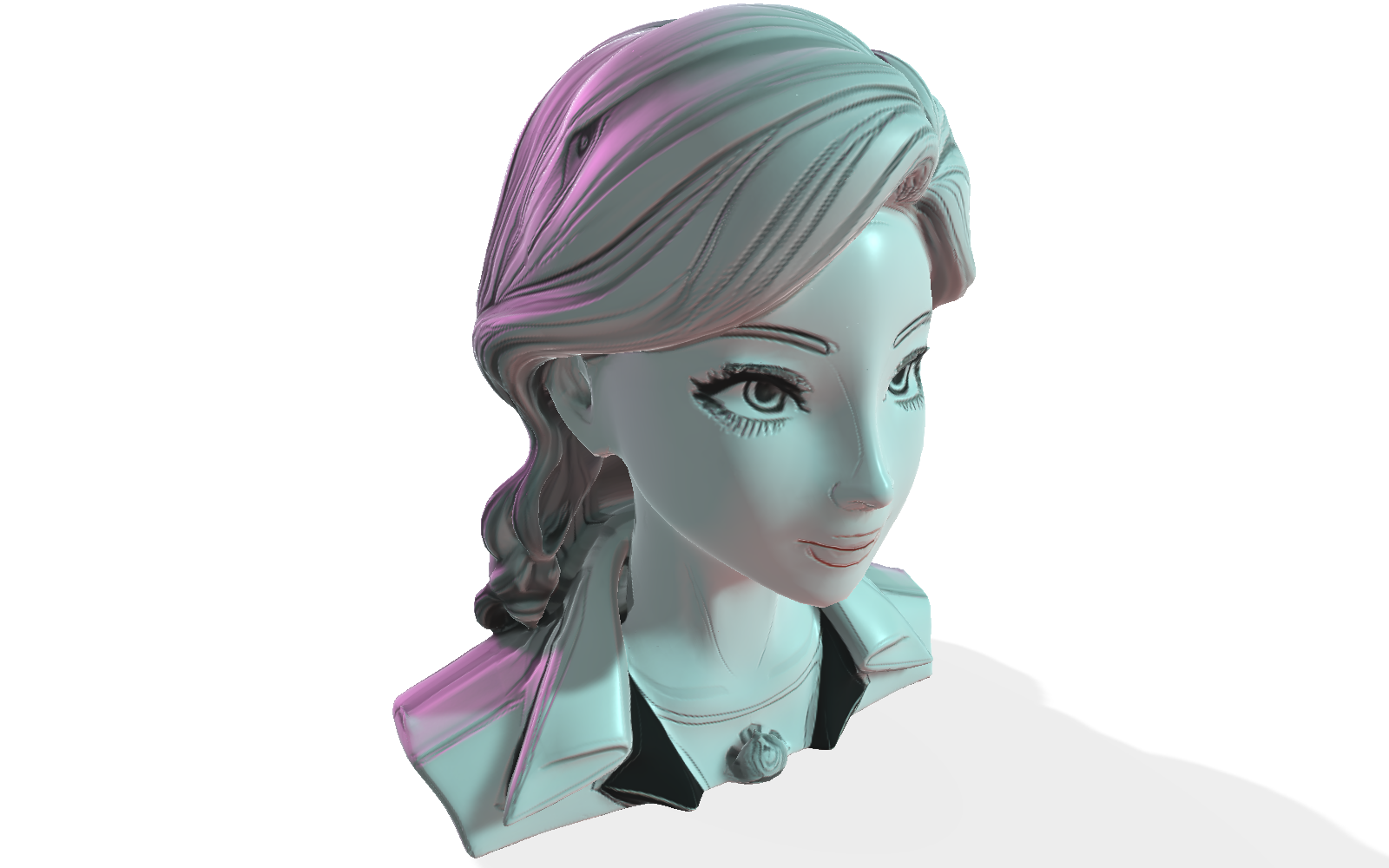 Meet the “Graceful Muse,” a stylized female bust that embodies elegance and confidence. Her hair is gently swept back, showcasing refined details around the face and a poised expression. The design features a subtle outfit collar and a decorative pendant at the neck, adding an extra touch of charm. This 3D model strikes a balance between simplicity and detail, making it an appealing display piece for desks, shelves, or artistic collections.