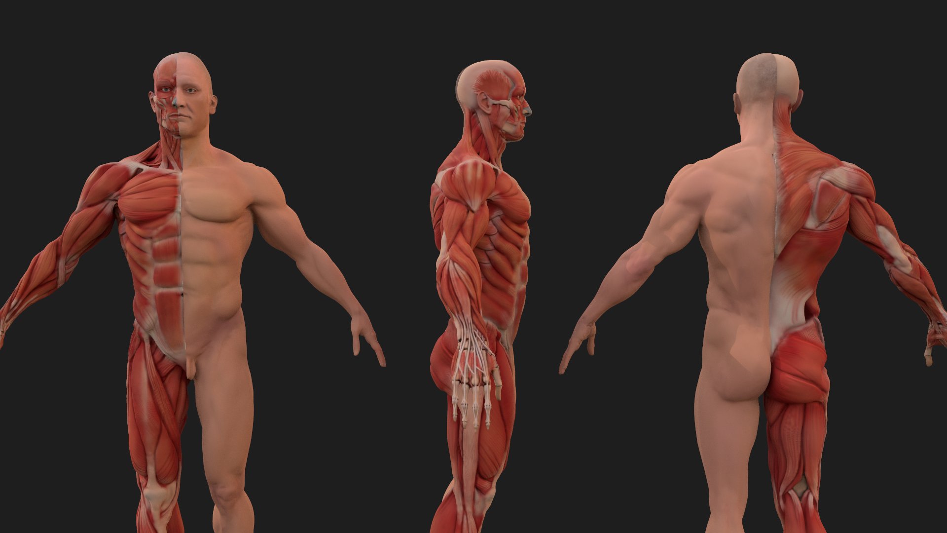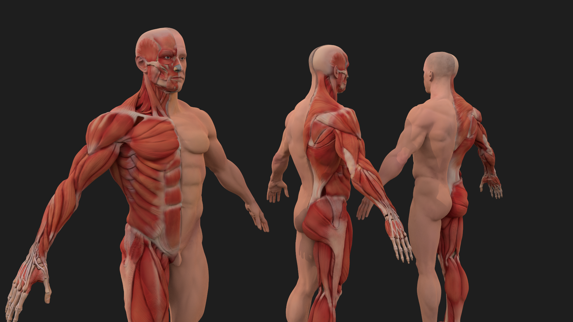 The most complete Full Body Male Anatomy asset available. Over 600 muscles and all major systems. Includes full body skeletal system with connective tissue, Muscular system. Includes OBJ for maximum compatibility.