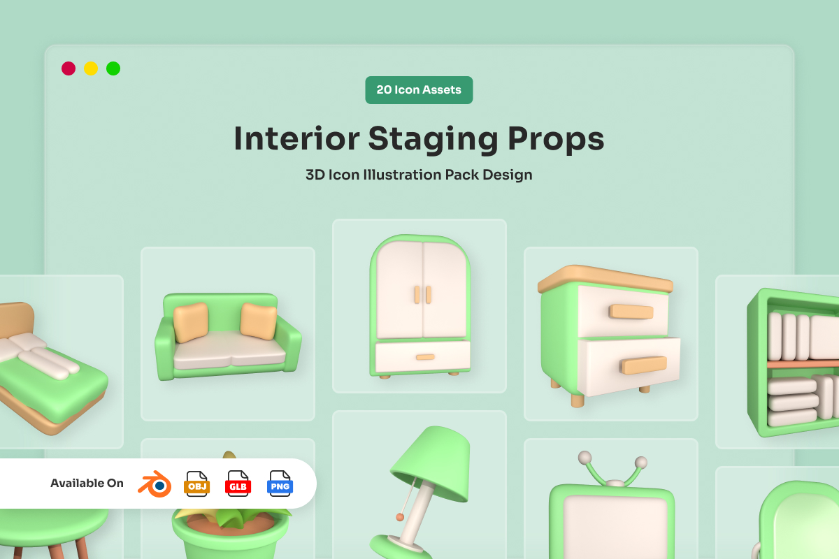 Bring your creative projects to life with this stylish set of 3D interior props. Each asset is designed with subtle textures, warm lighting, and balanced proportions to give a polished and professional look.